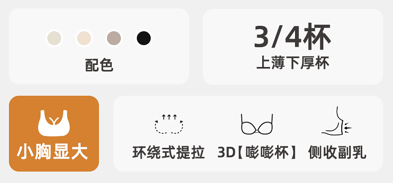 雅黛俪女士文胸小胸聚拢显大上薄下厚手掌杯显大内衣无痕胸罩
