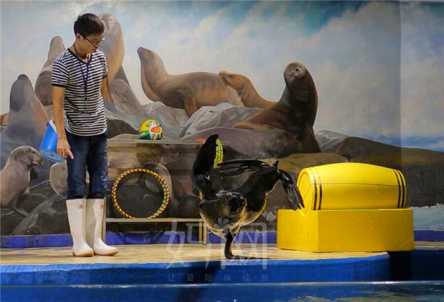 呆萌的海狮正与驯兽员老师一起,它们扭着圆滚滚的身子,瞪圆了大大的黑眼镜,通过点头、握手、敬礼和大家打招呼,用自己的招牌动作:单鳍倒立、顶球、太空舞、水中芭蕾舞等等动作萌翻你的神经。另外,你也可以和我们的海狮明星们进行互动、拍照留念哦!