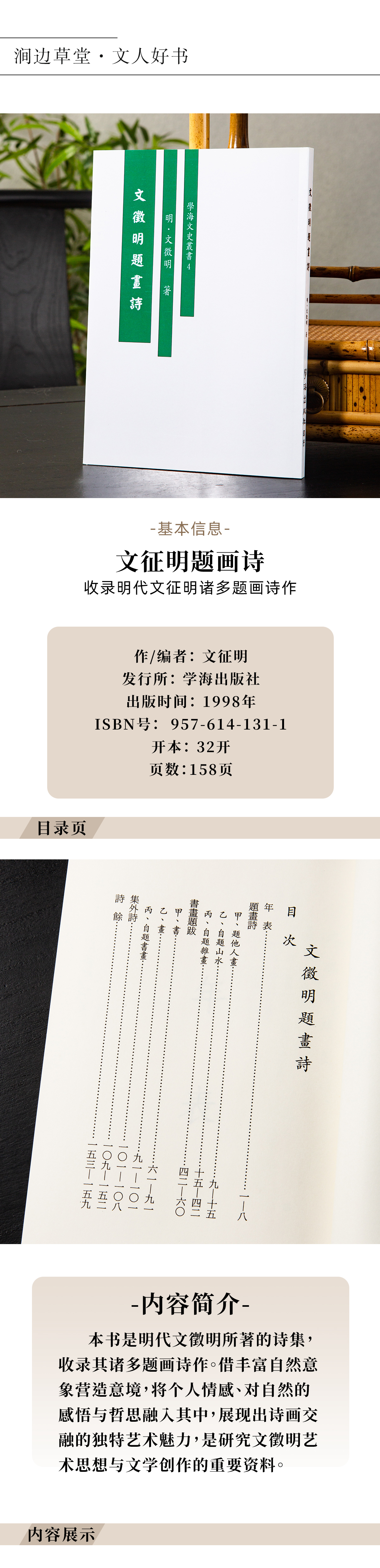 【绝版好书】《文征明题画诗》32开158页,台湾学海出版社初版