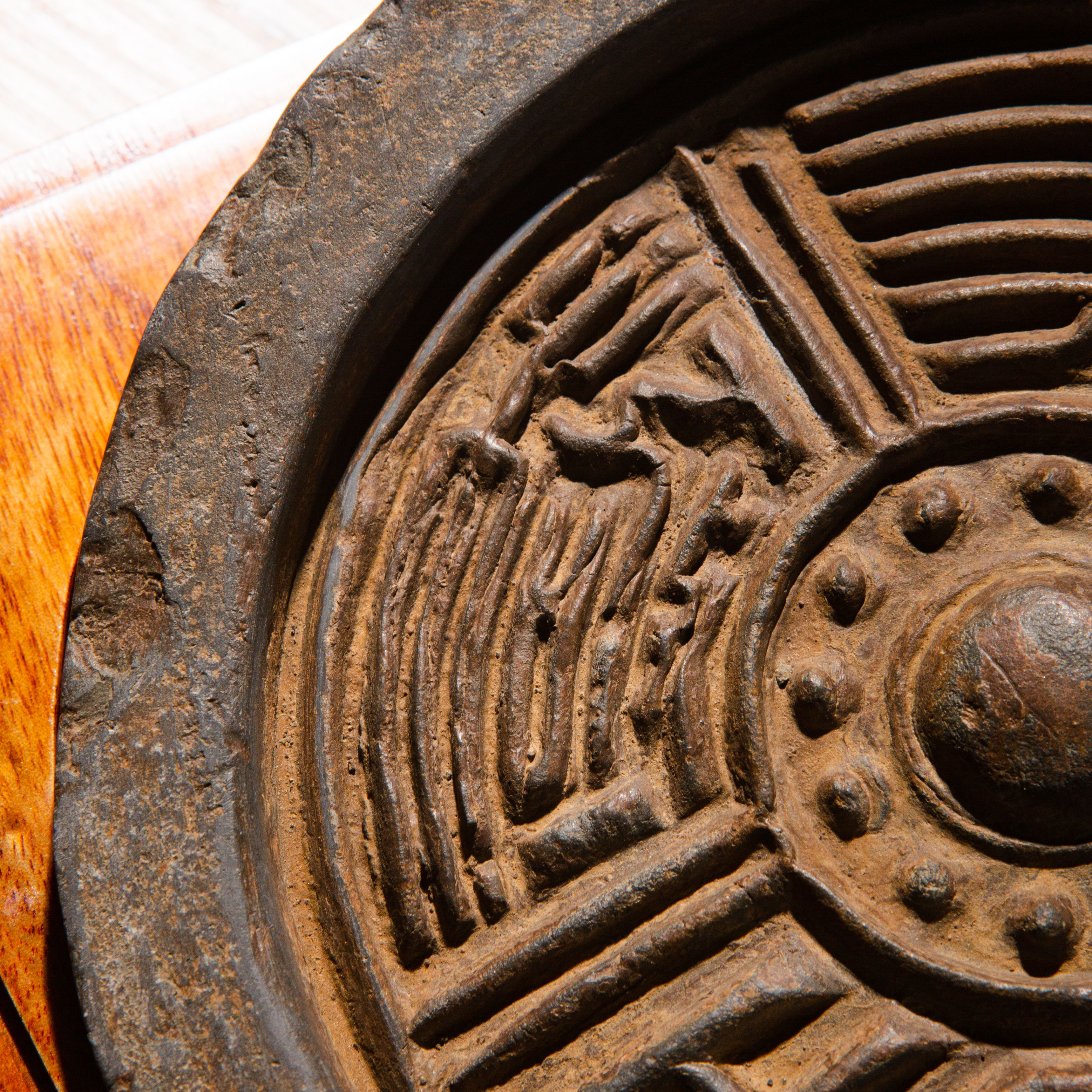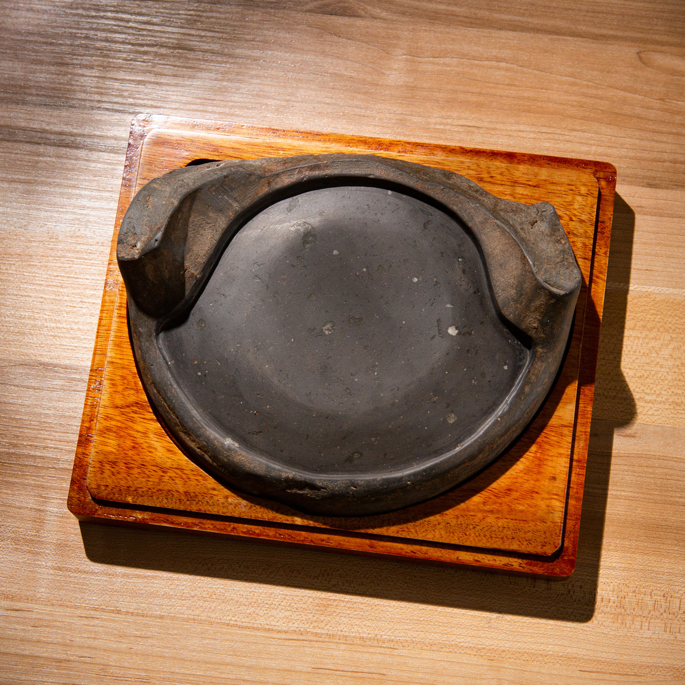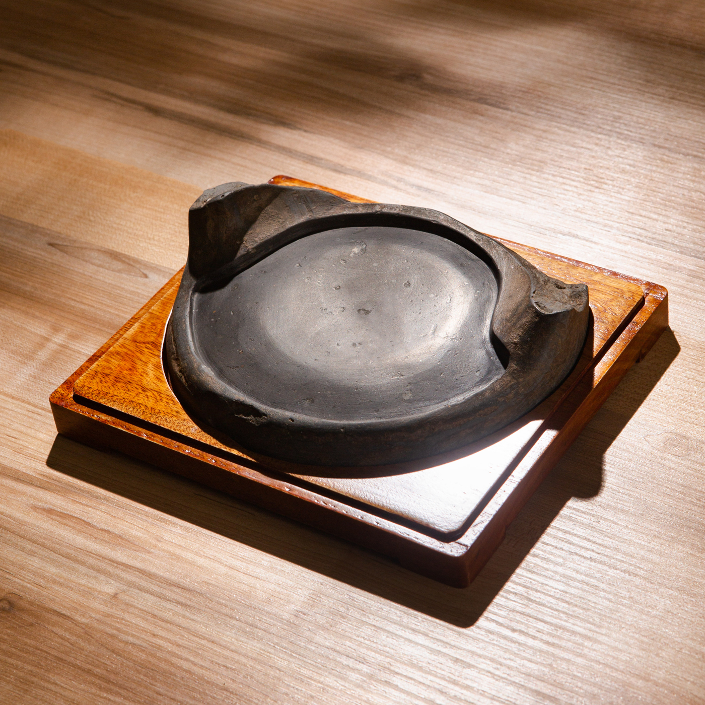汉代“长生无极”瓦当制砚。其文字精美古拙,字口清晰有力度,胎质坚实细腻,整体呈现古朴之气息,且配有手工精制刻字木盒。