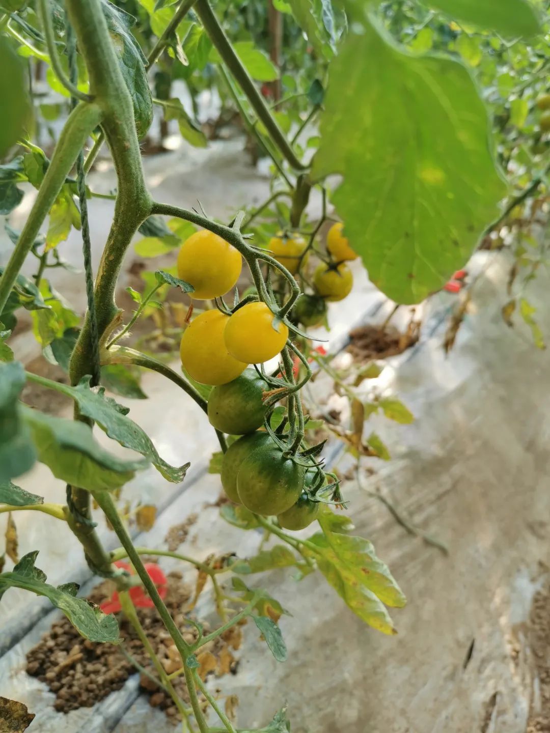 碧玉小青柿因为其外表的颜色也造成很多误会,没吃过的朋友都误以为它是生的西红柿而错过,毕竟我们见过大部分西红柿的成长过程都是由青变红,其实对于种植者而言却很好判断它的生熟:未成熟的碧玉小青柿表皮都会有青色到浅黄色过度的渐变,当尾部的青色退去,整个外衣趋近于一个颜色的就是成熟了,成熟度高的基本都是青黄色的状态,用手捏着有一定弹性。