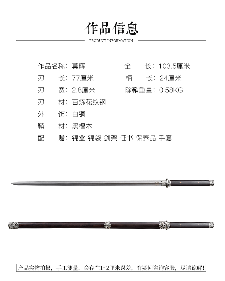 莫晖剑 汉唐宝剑 花纹钢唐横剑 龙泉沈广隆宝剑一体剑 收藏传统宝剑 硬剑 未开刃
