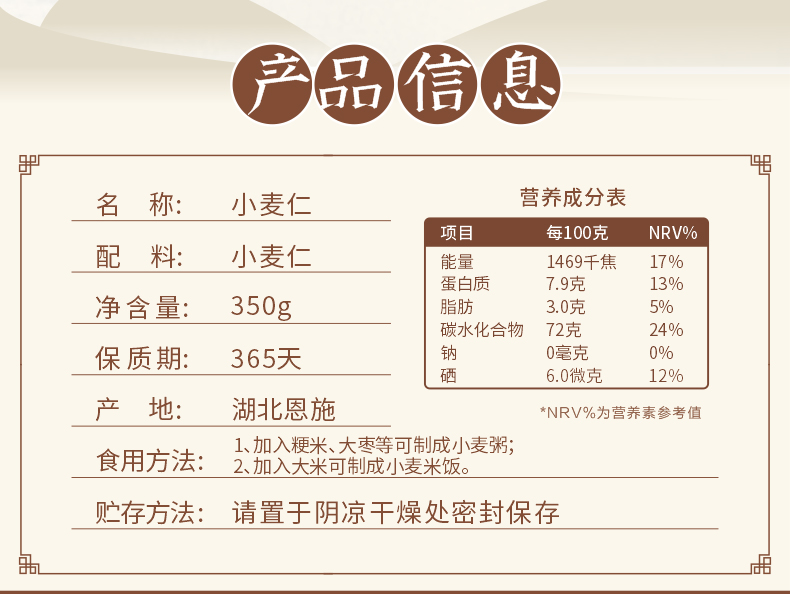 【恩施】小麦仁 麦香浓郁 弹口爽滑 350g/袋