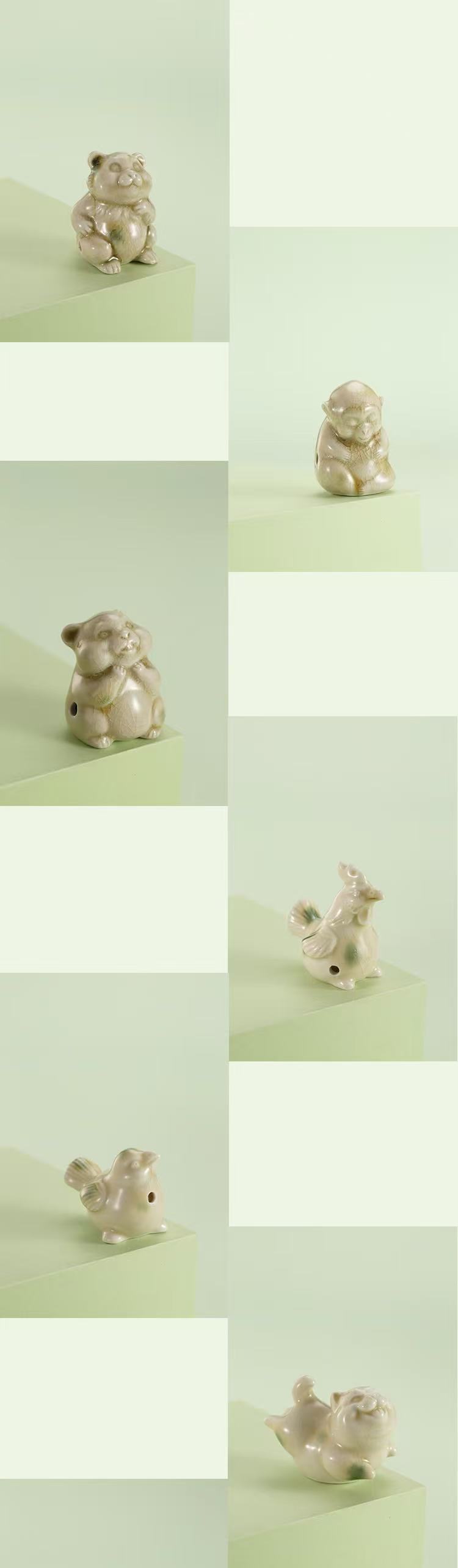非遗手作 泥人刘 长沙窑 嘟嘟长沙兽 多用途陶瓷摆件 茶宠 多功能口哨