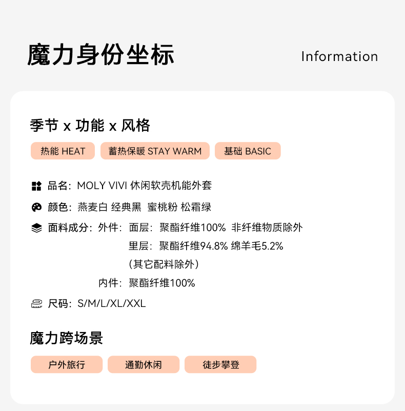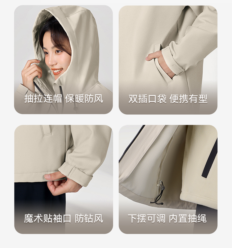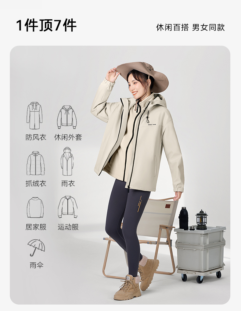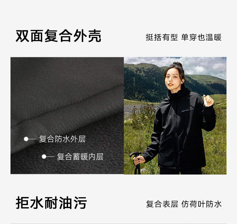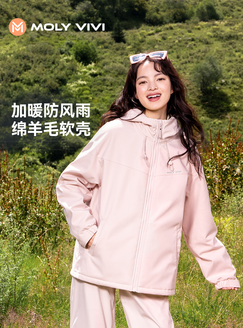 MOLYVIVI羊毛软壳衣外套女2024秋冬新款三合一防风防水登山服