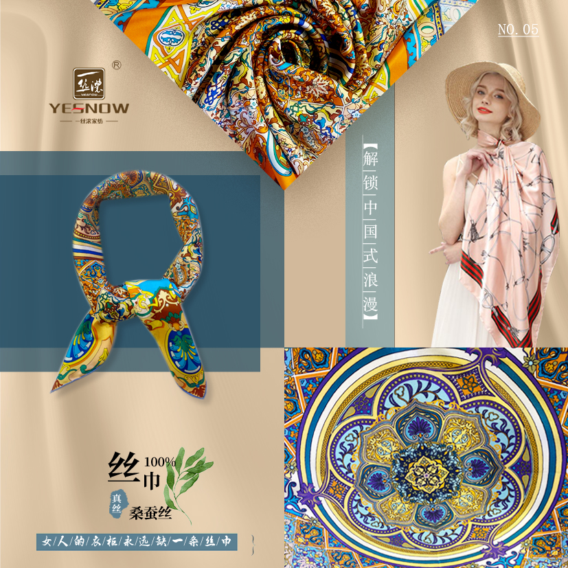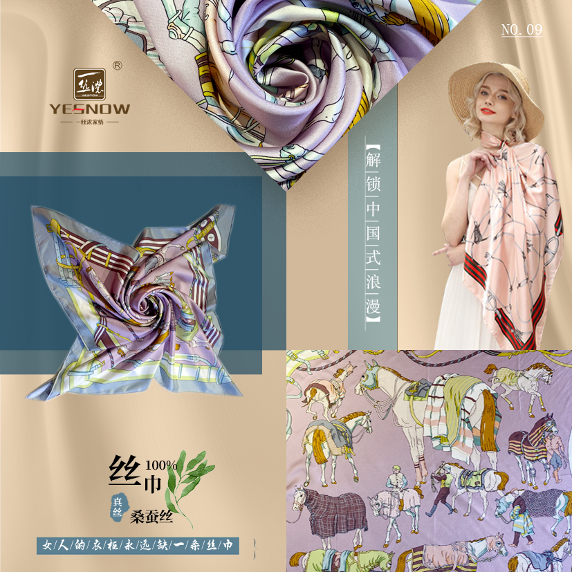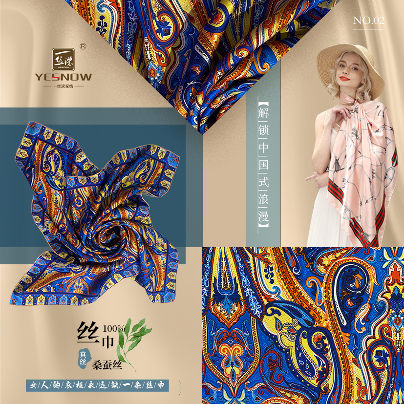 100%桑蚕丝重磅真丝19姆米斜纹数码印花90*90丝巾精美礼盒包装