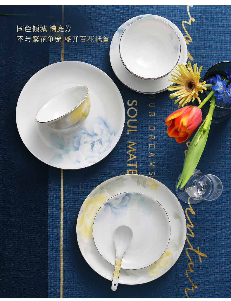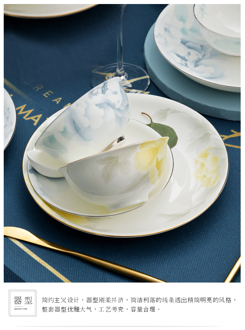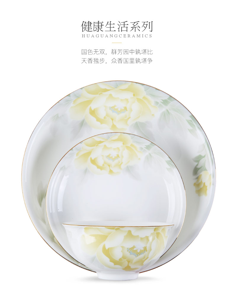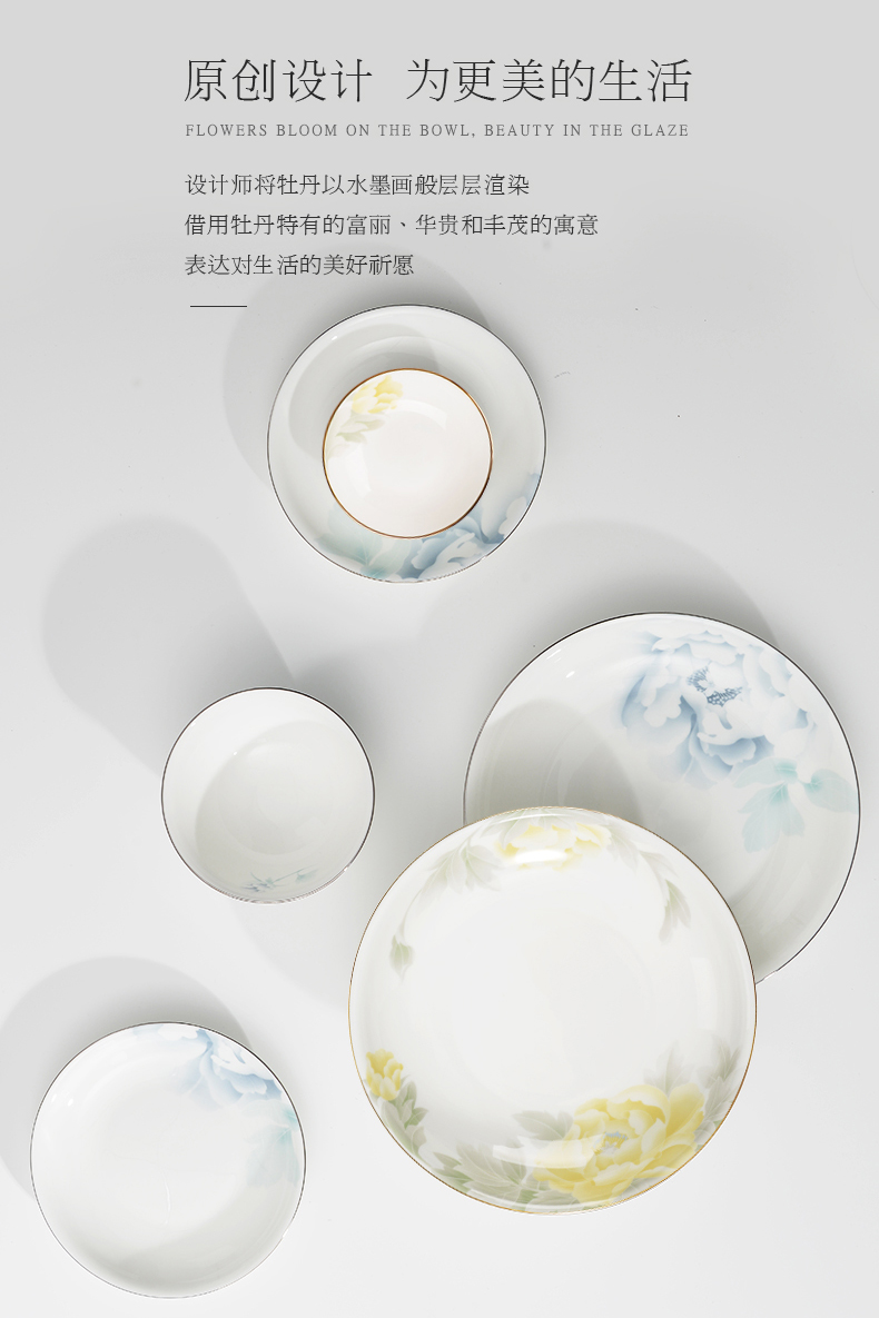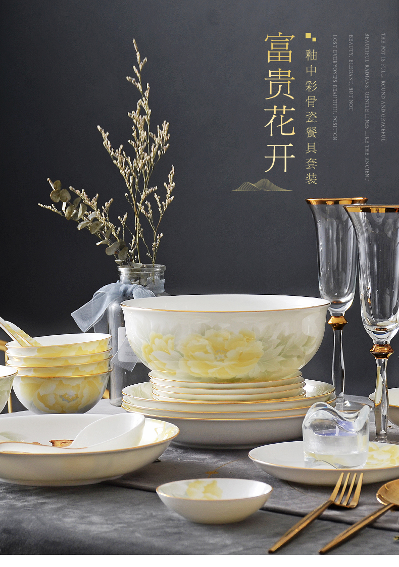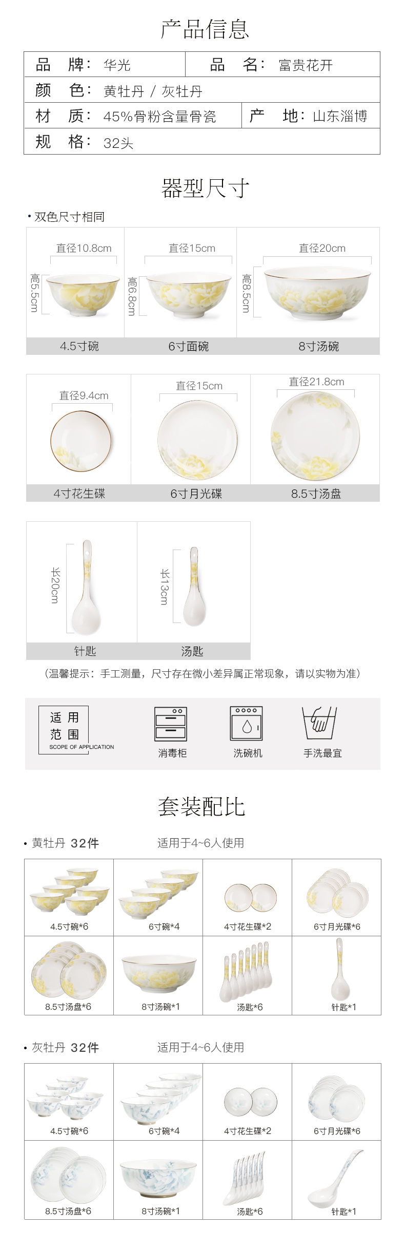 华光国瓷 骨瓷碗碟套装家用 32头餐具套装 釉中彩新中式礼盒 富贵花开