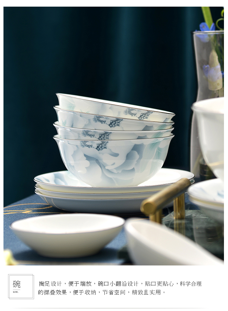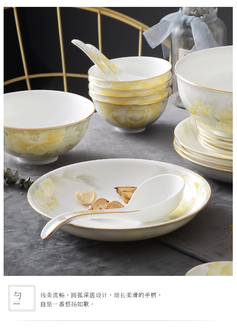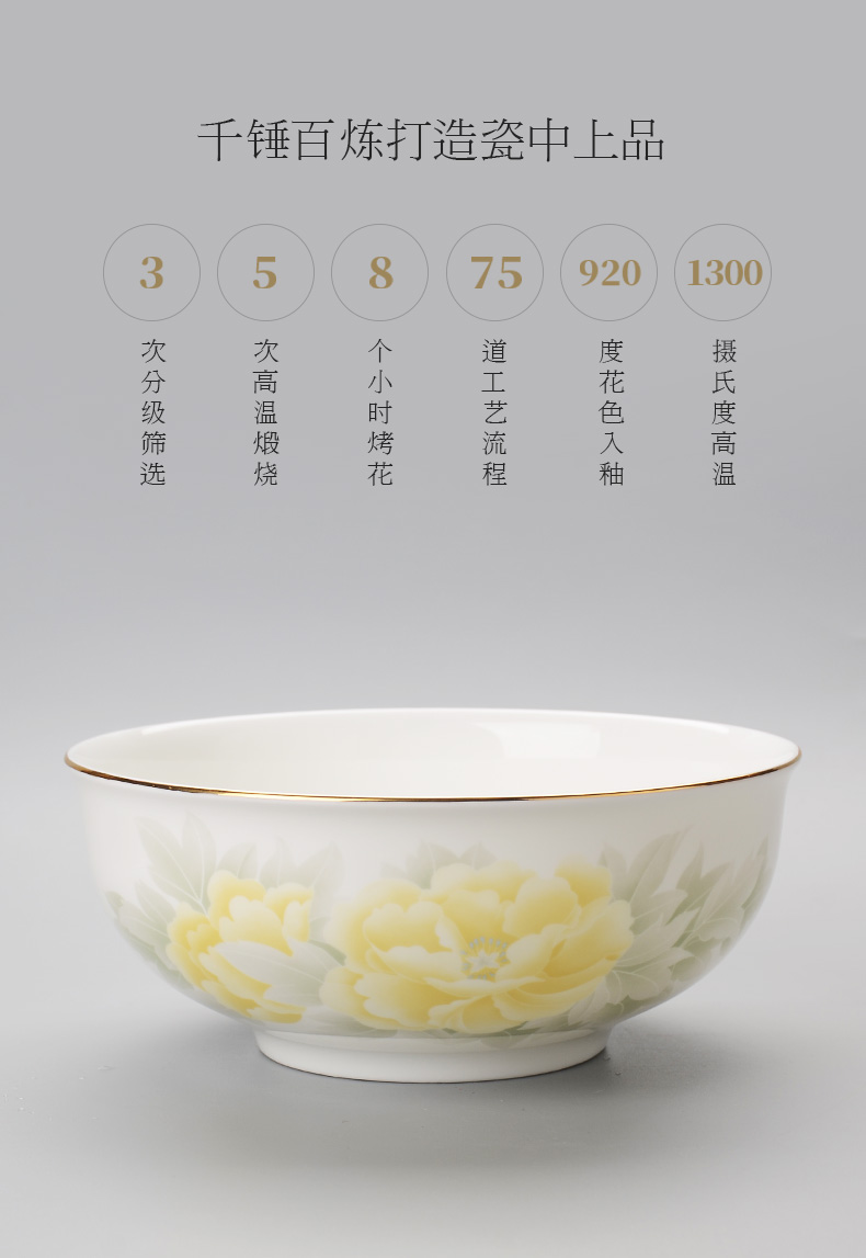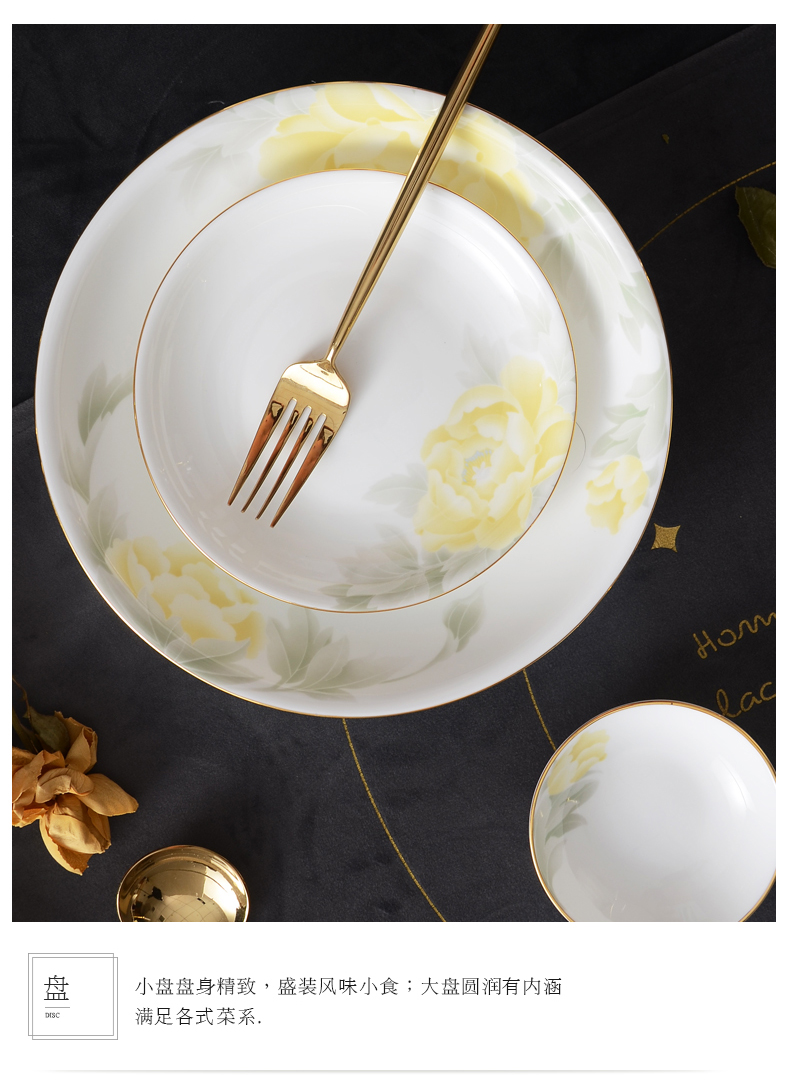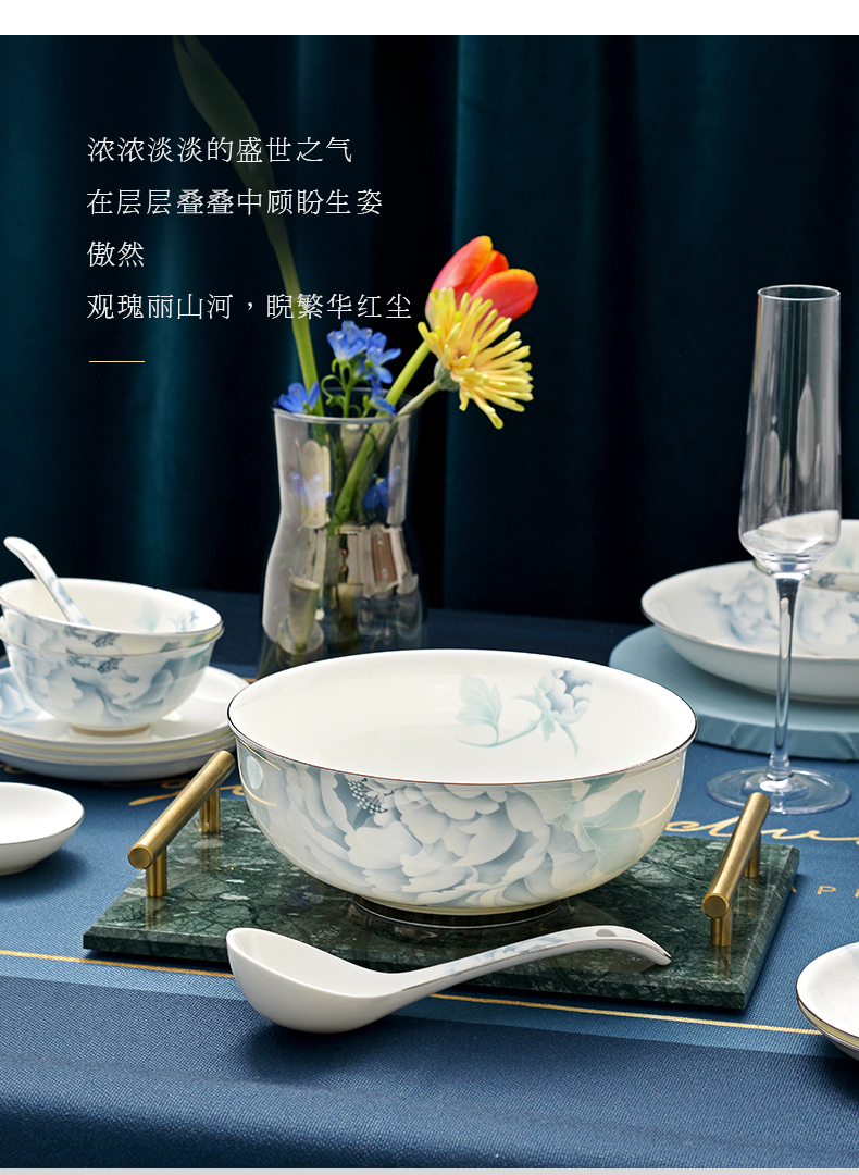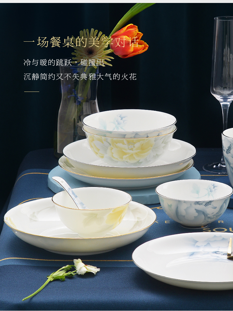 华光国瓷 骨瓷碗碟套装家用 32头餐具套装 釉中彩新中式礼盒 富贵花开