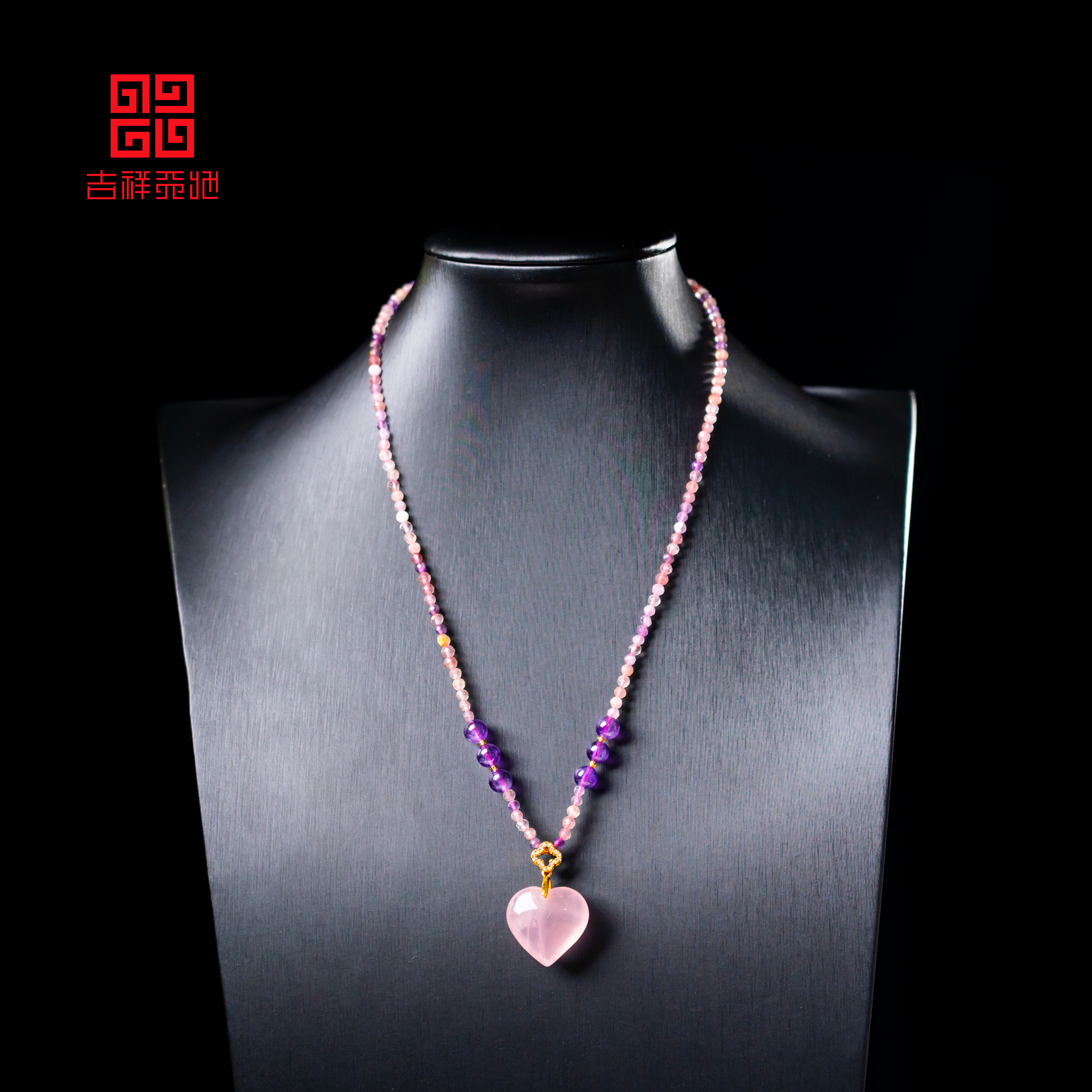 吉祥天地 粉水晶心形项链