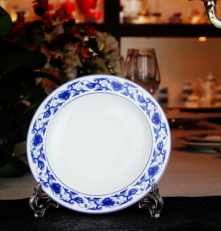 景德镇陶瓷 国瓷红叶 青花瓷富贵牡丹莲花餐具