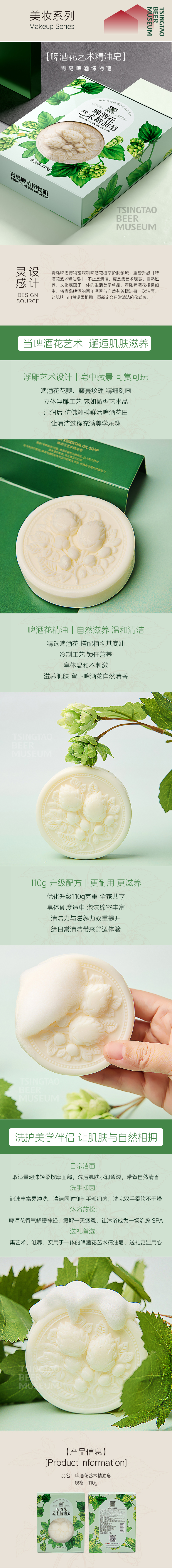 青岛啤酒博物馆啤酒花艺术精油皂110g 青岛啤酒官方文创