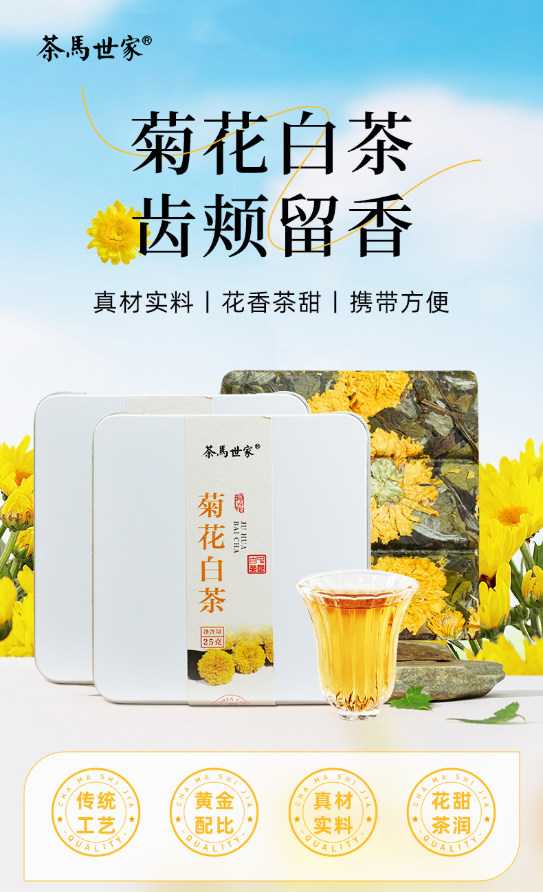 茶马世家菊花白茶 福鼎白牡丹搭配精选黄菊白茶茶叶小盒装25g