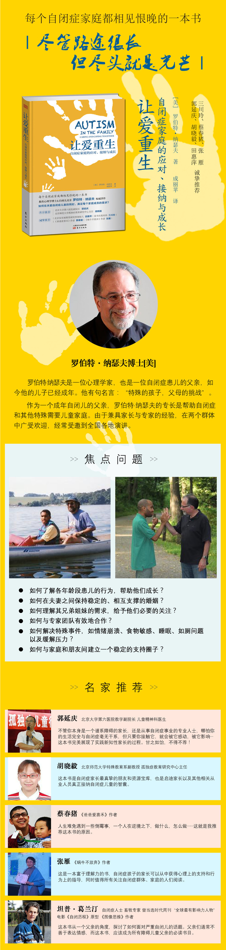 “罗伯特·纳瑟夫将个人经历与临床知识相结合,从而给自闭谱系障碍患者的父母、家人带来希望、力量和平静,实在难能可贵。”