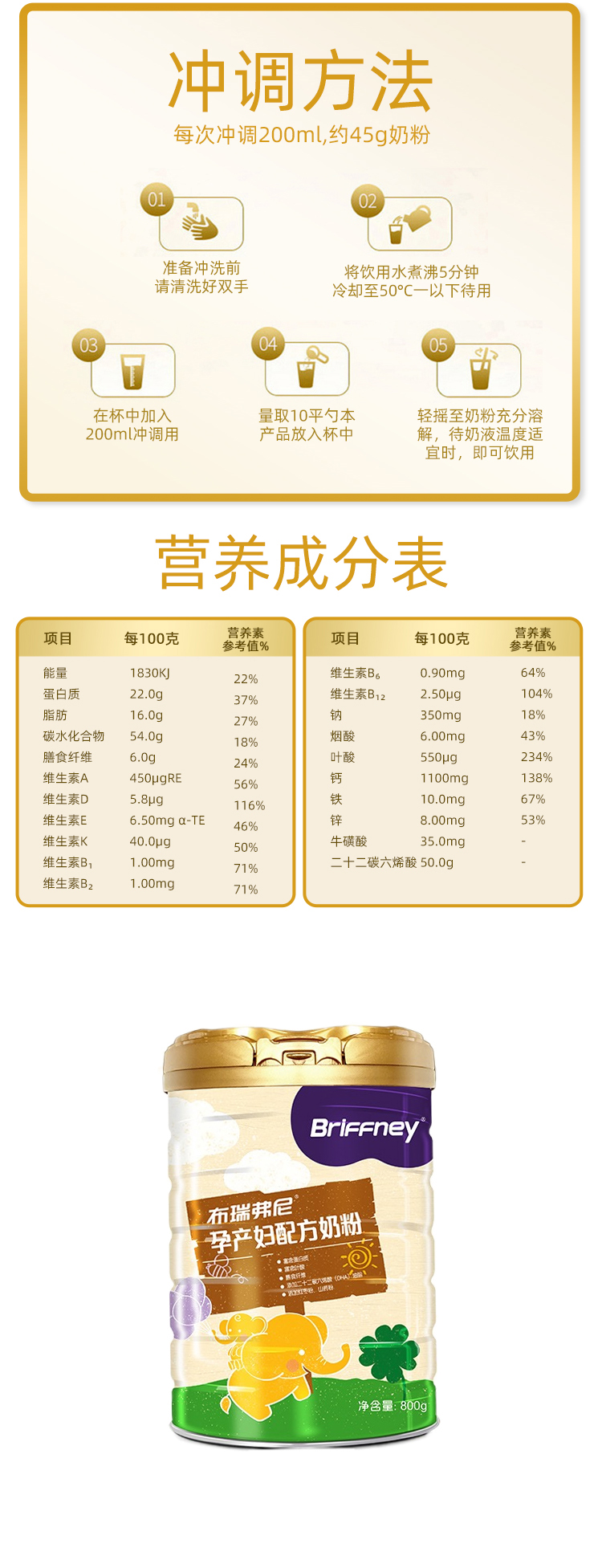圣元布瑞弗尼孕产妇奶粉助力宝宝生命早期1千天营养800g