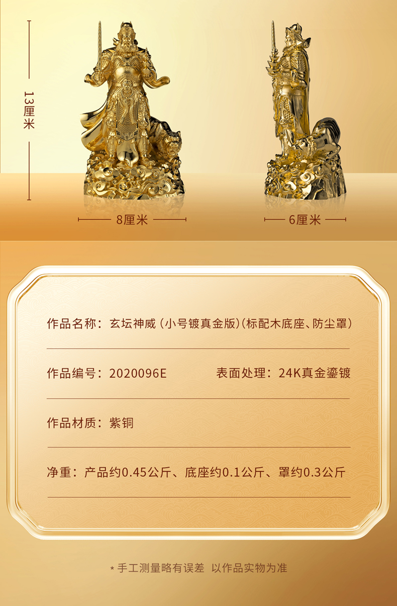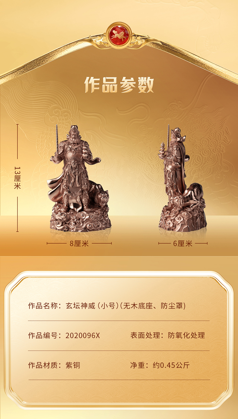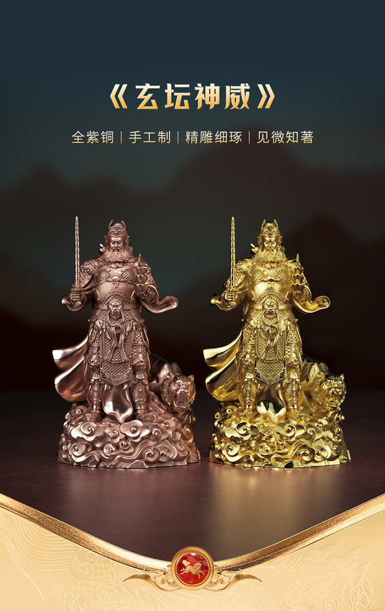 铜师傅 见微系列《玄坛神威》武财神赵公明紫铜摆件 家居工艺品
