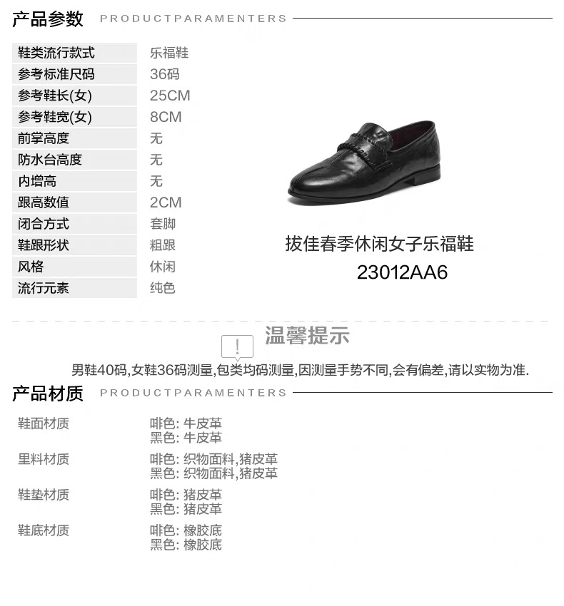 【云粉节】【拔佳】BF楼Bata乐福鞋女2026春款复古英伦风牛皮通勤一脚蹬23012AA6 吊牌价959 活动价669