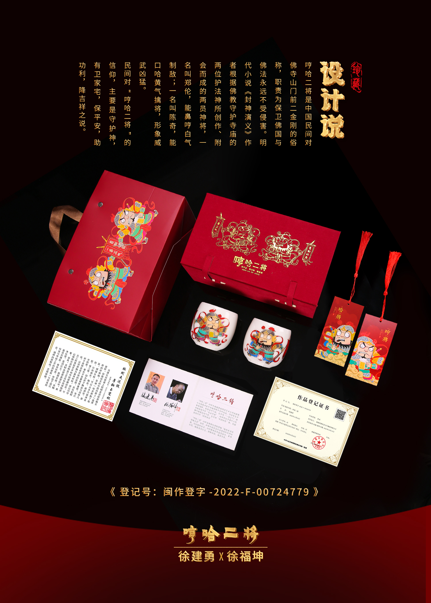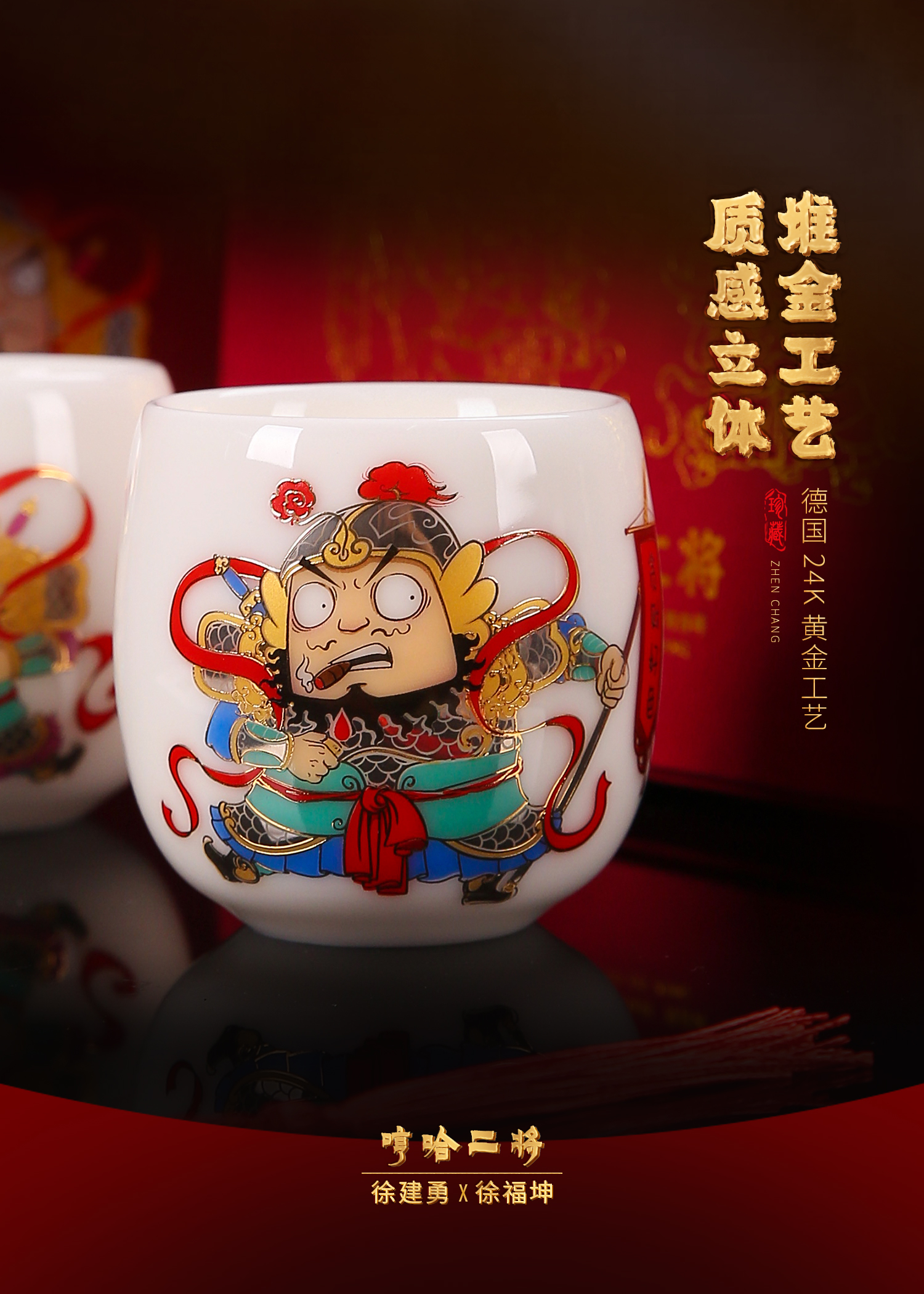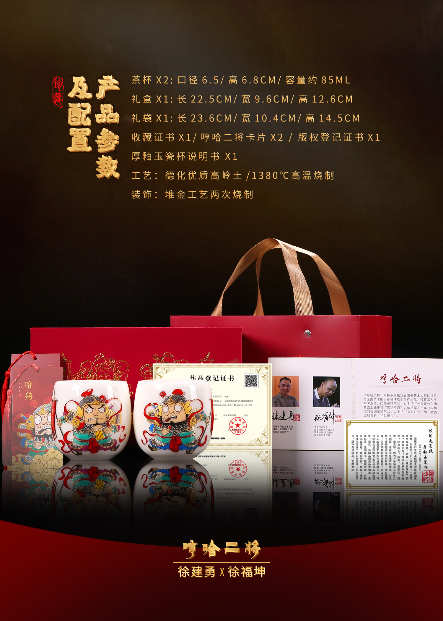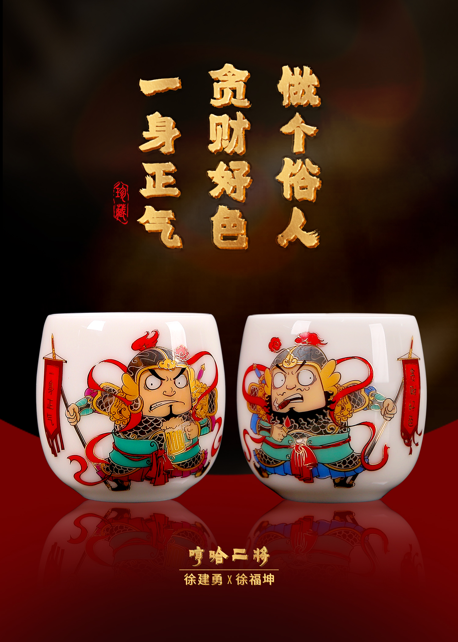徐建勇&徐福坤复古国风哼哈二将,羊脂玉瓷主人杯个人品茗杯茶杯对杯 ,礼品送领导长辈