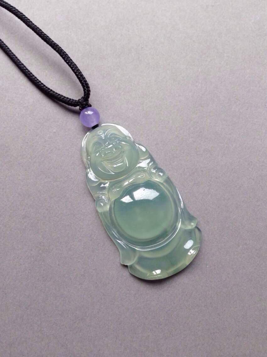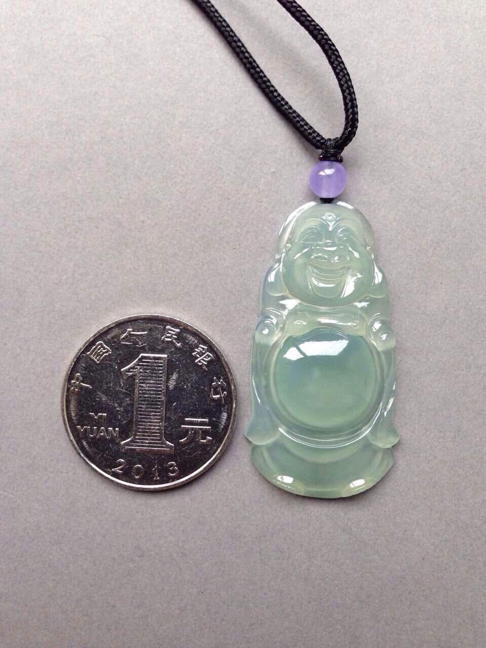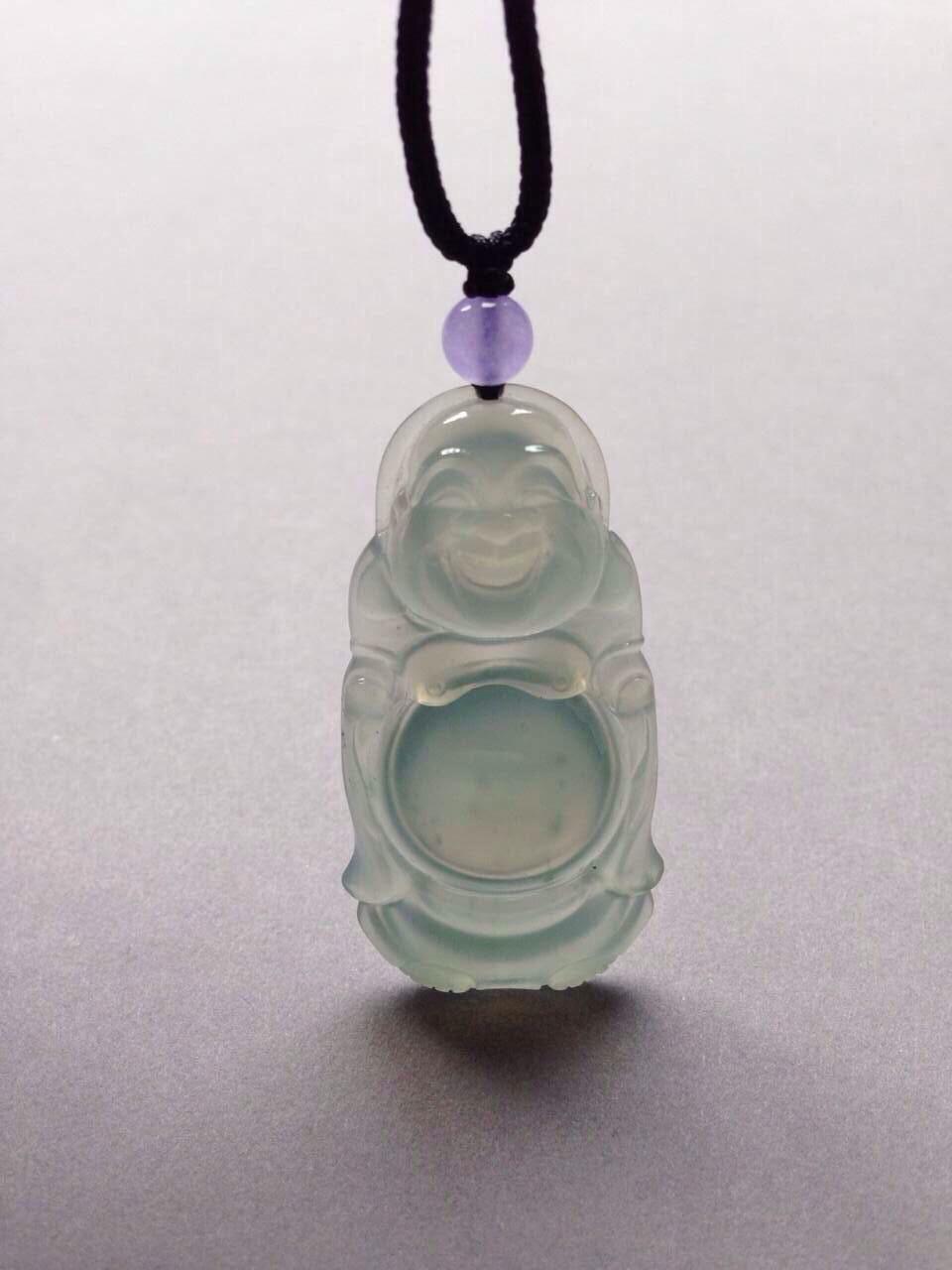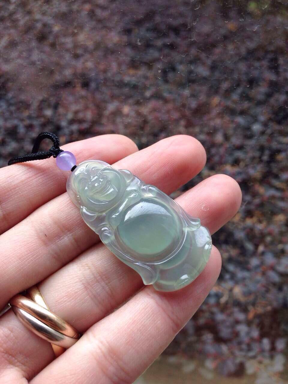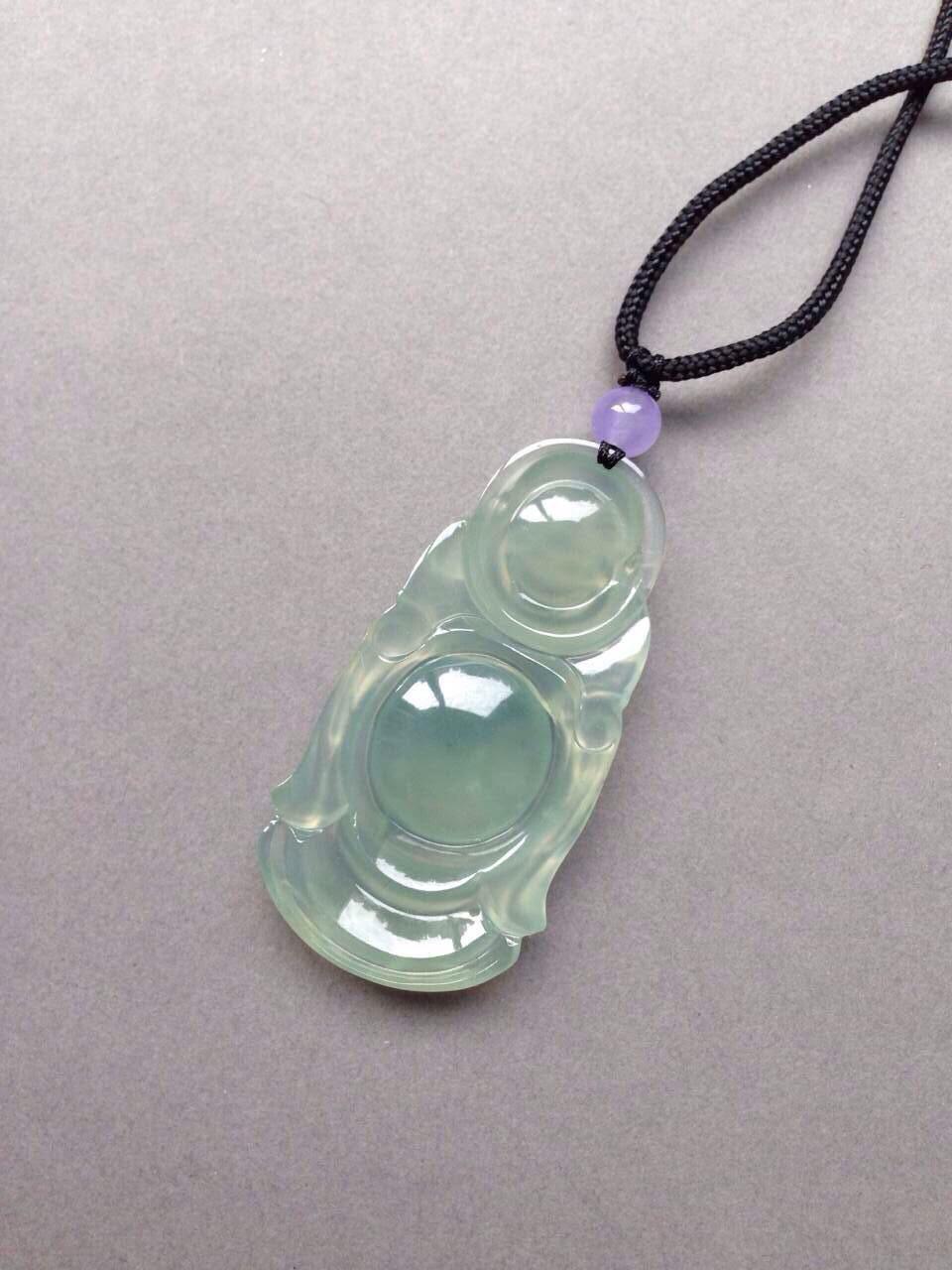 翡翠高冰种晴水大站佛,42.2*22*5.3mm。尺寸大气,长度过40的大站佛。种质老,起荧光,胶感强烈,雕工精美,晴水色漂亮,上身效果赞,特别大方,喜大站佛的不要错过了,就一个,现在这尺寸的佛随便都要一万五以上,这么划算的哪找