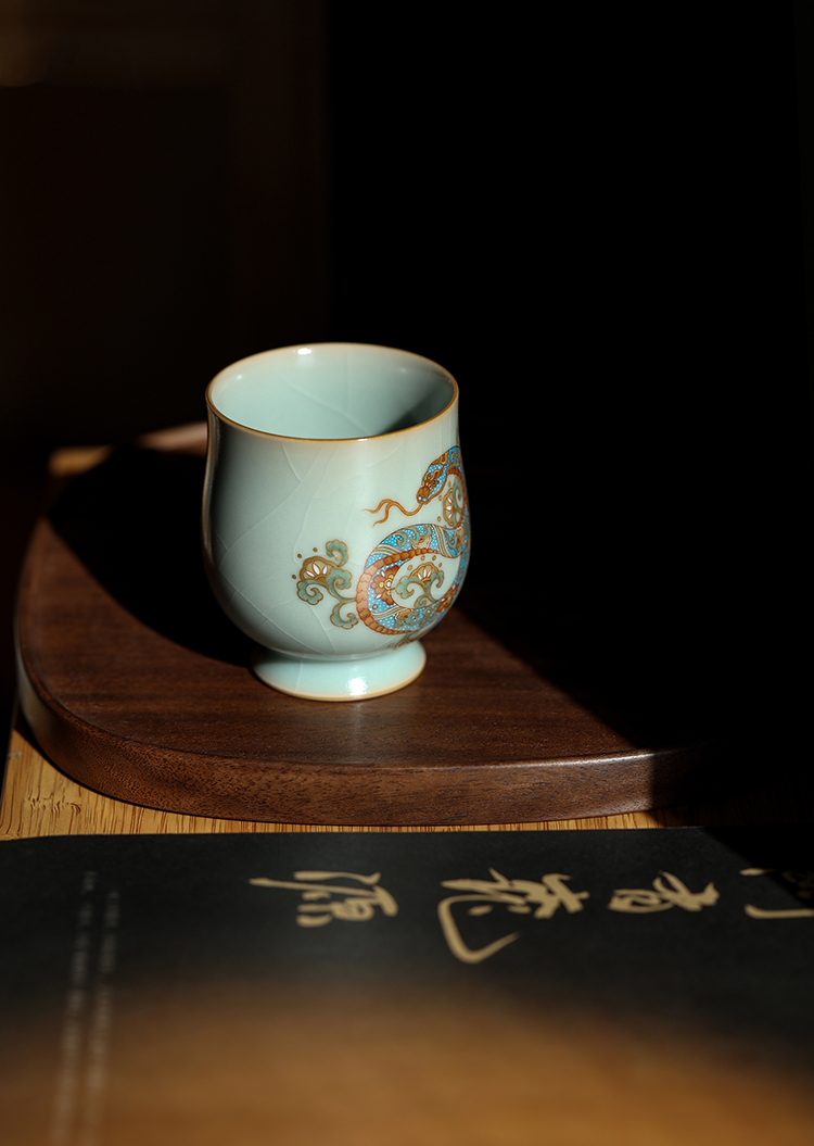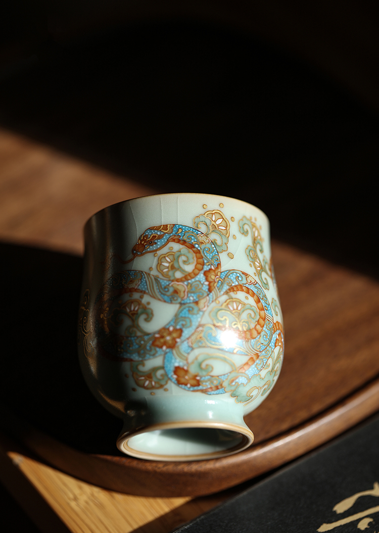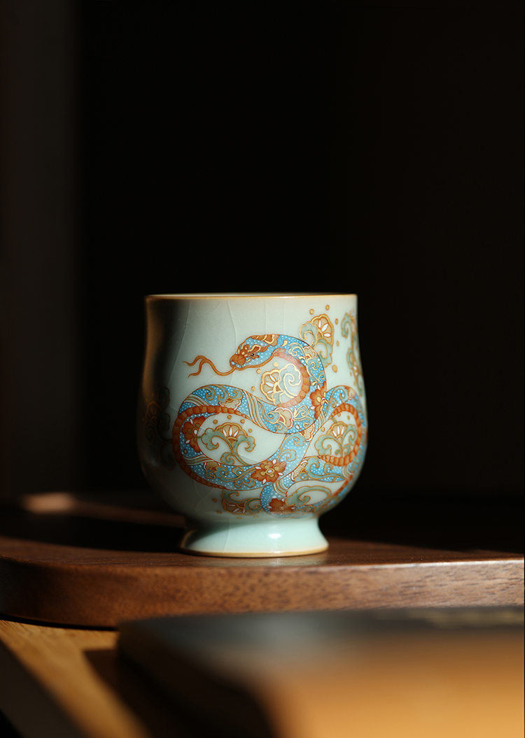 问鼎汝瓷鼎峰系列天青复刻款玉金香杯(蛇来运转)