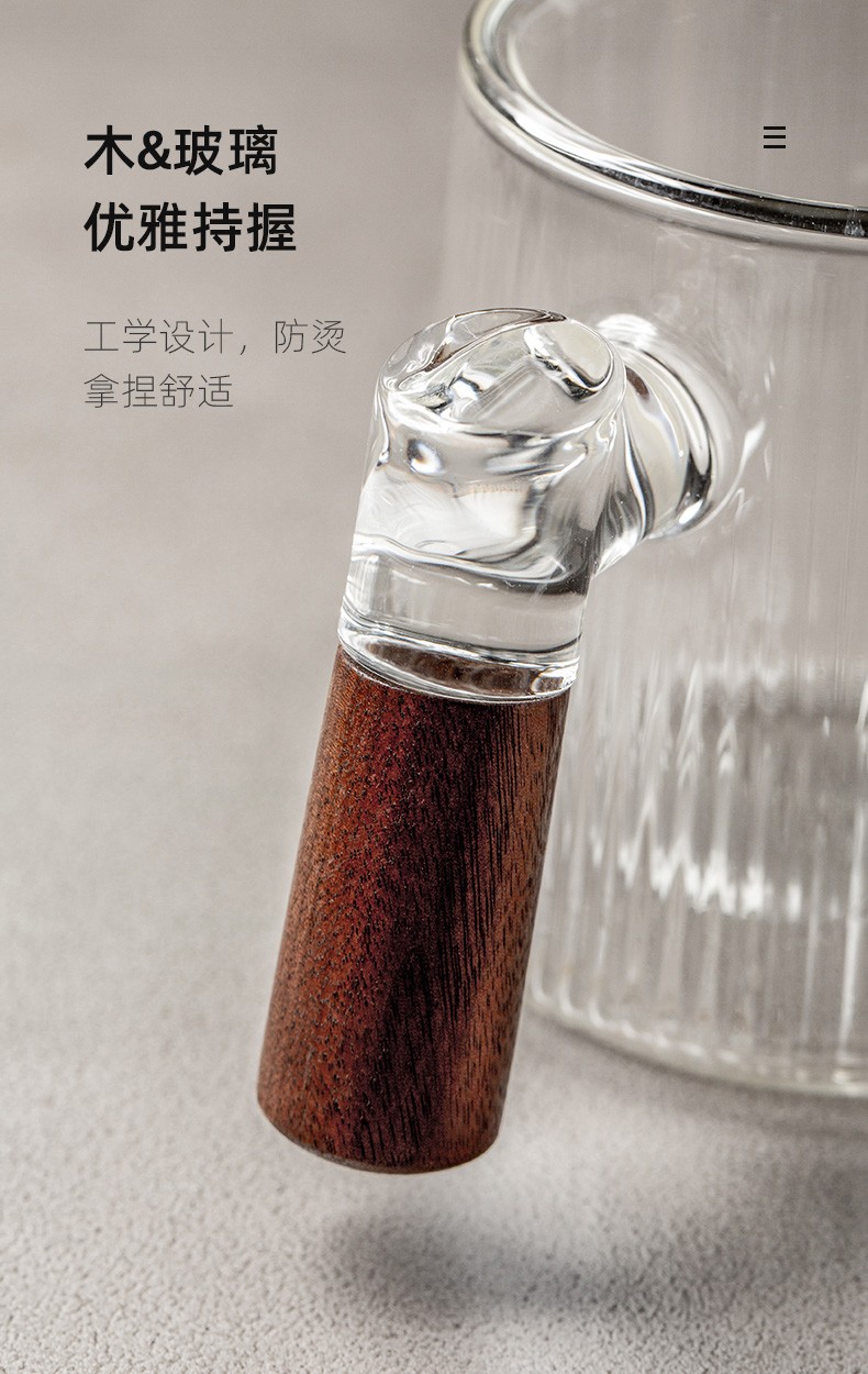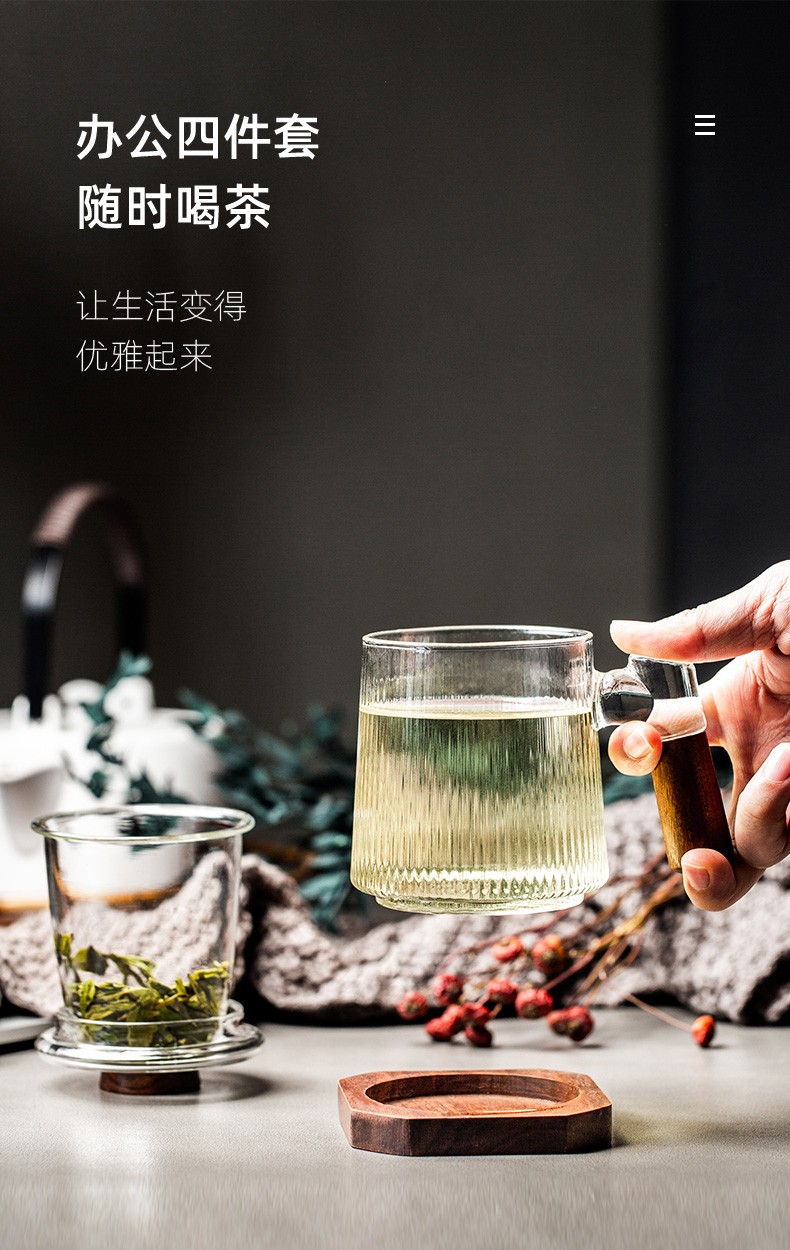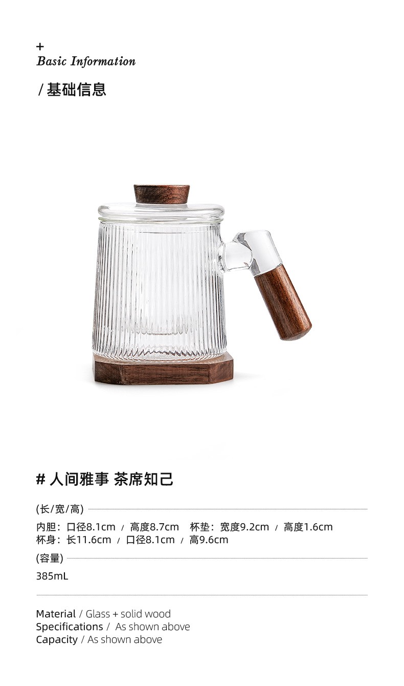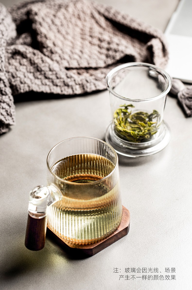 茶杯家用玻璃带盖过滤泡茶杯办公室男女喝茶杯子茶水分离杯 【推荐】心悦玻璃杯胡桃木杯柄(带胡桃木杯垫)K2d