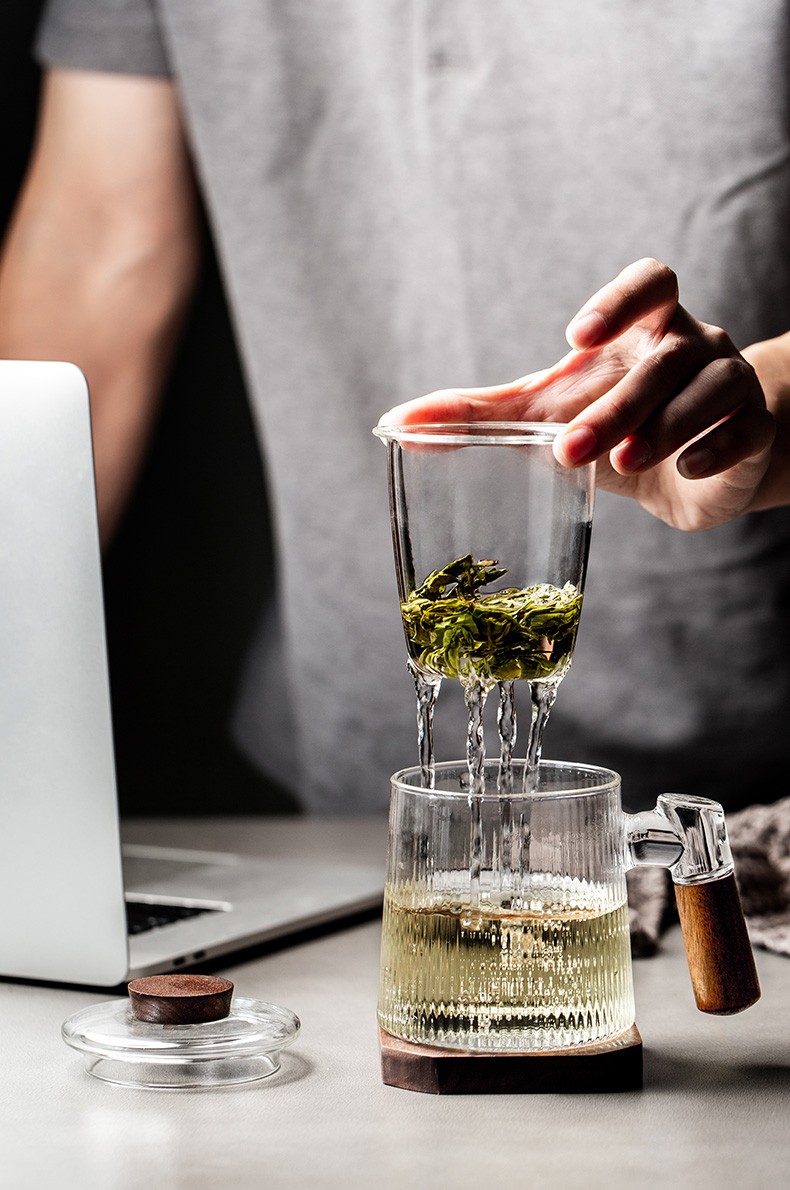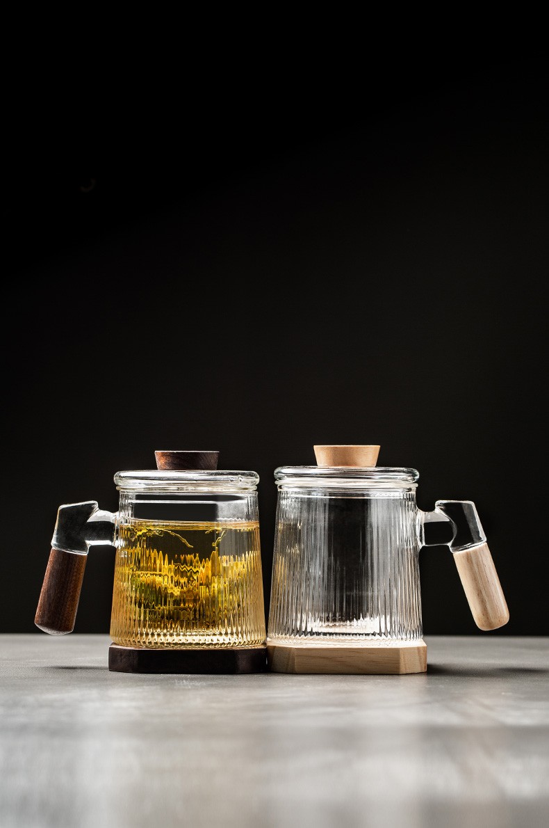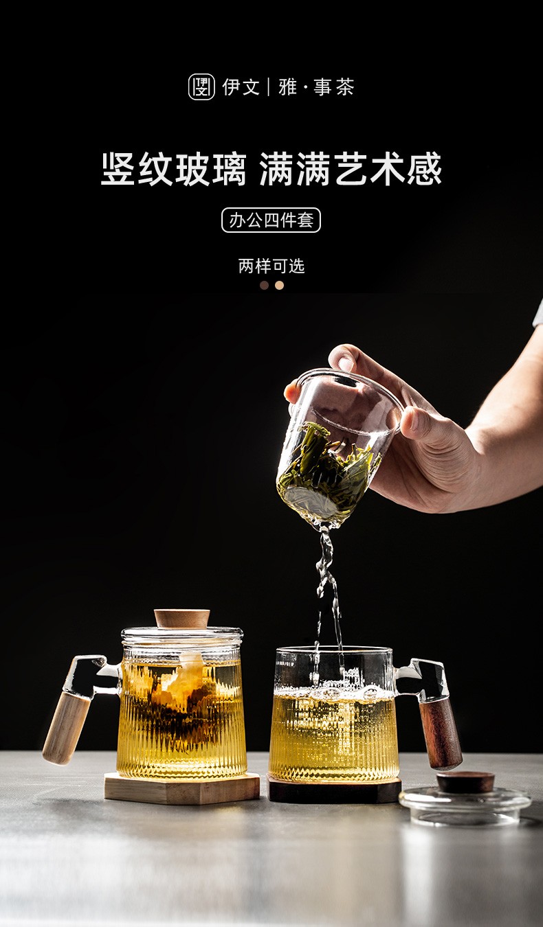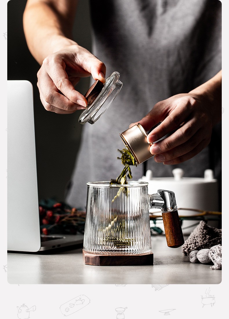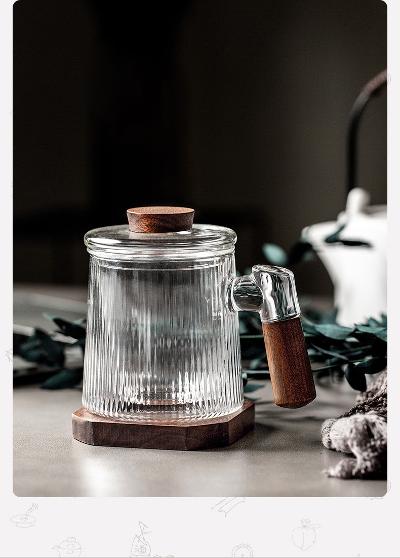 茶杯家用玻璃带盖过滤泡茶杯办公室男女喝茶杯子茶水分离杯 【推荐】心悦玻璃杯胡桃木杯柄(带胡桃木杯垫)K2d