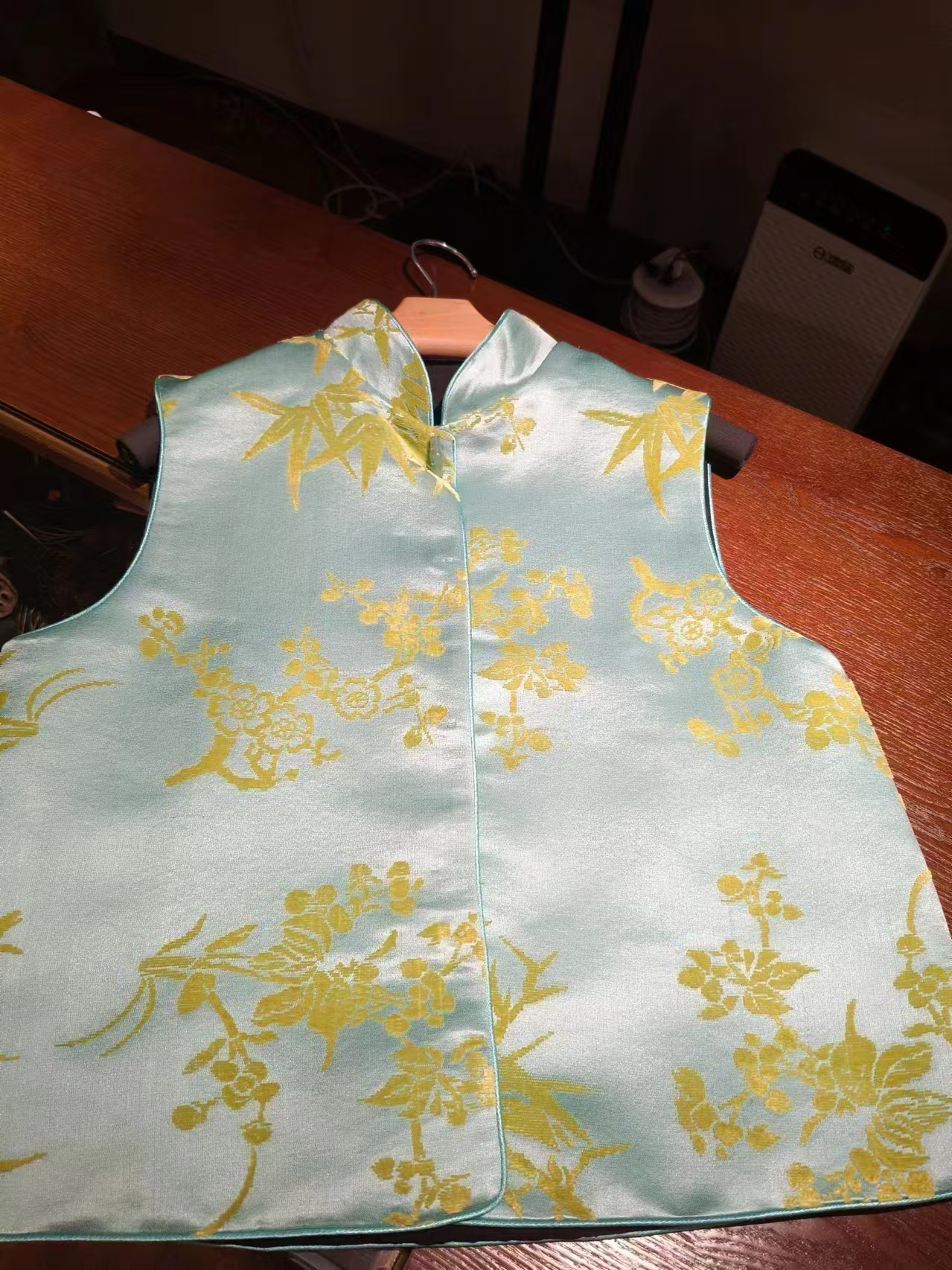 瑕疵|盛唐牡丹| 玉绿底色真丝漳绒马甲[特价品]