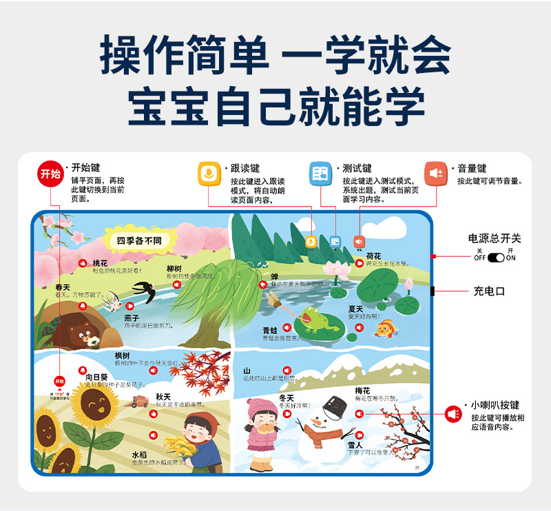 【语言启蒙❗️宝宝学说话点读书】操作简单,宝宝自己就能学!0-3岁儿童发声会说话的有声早教书玩具1
