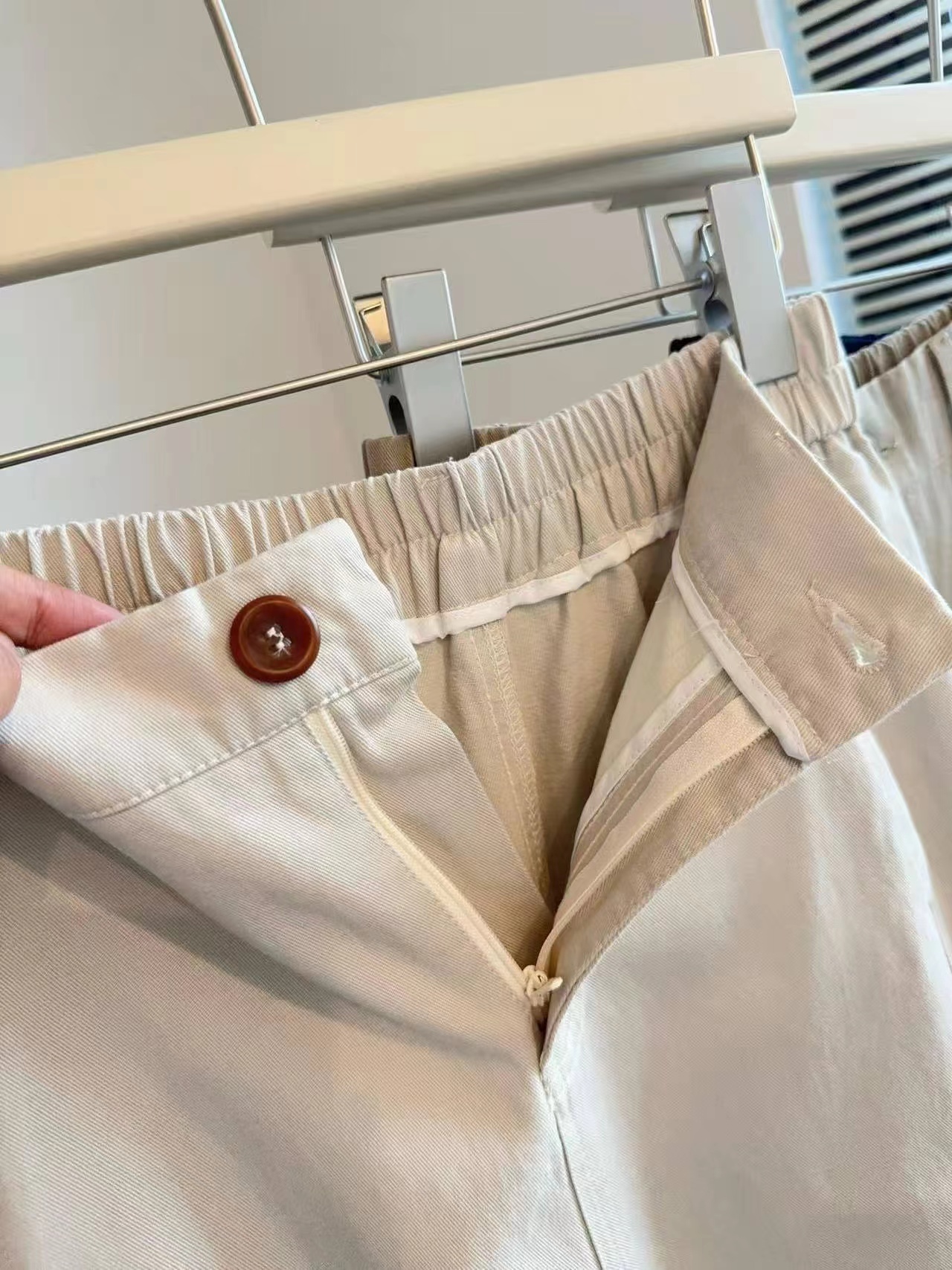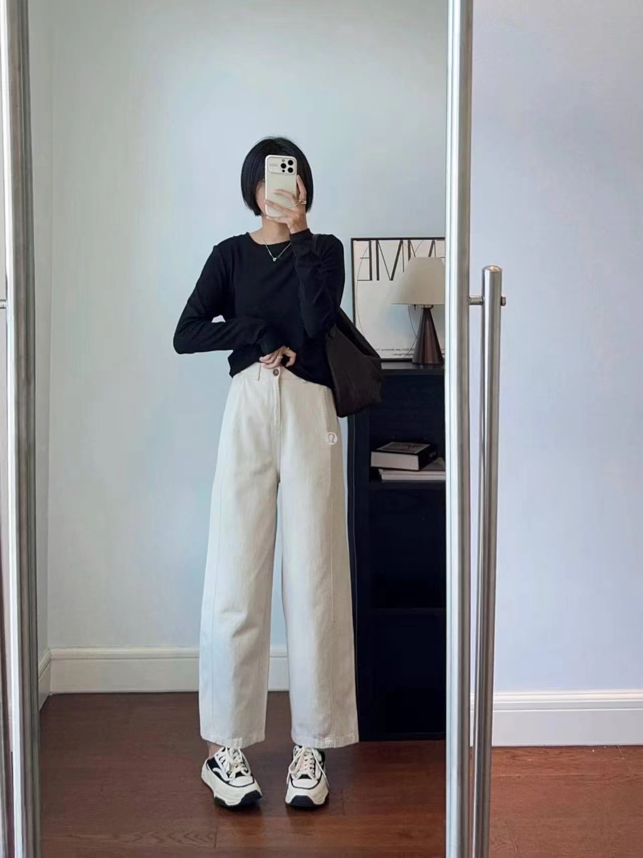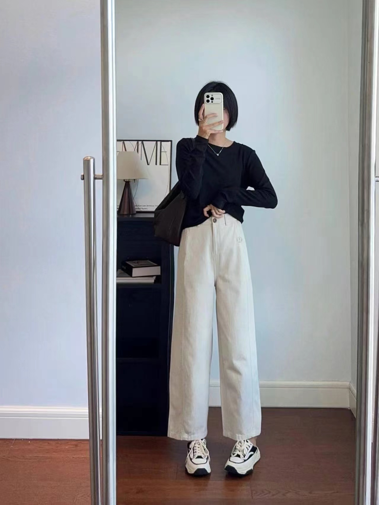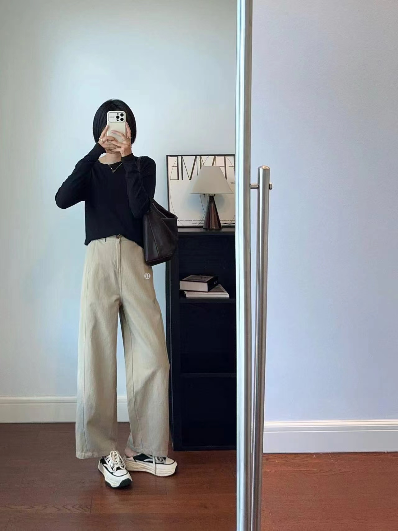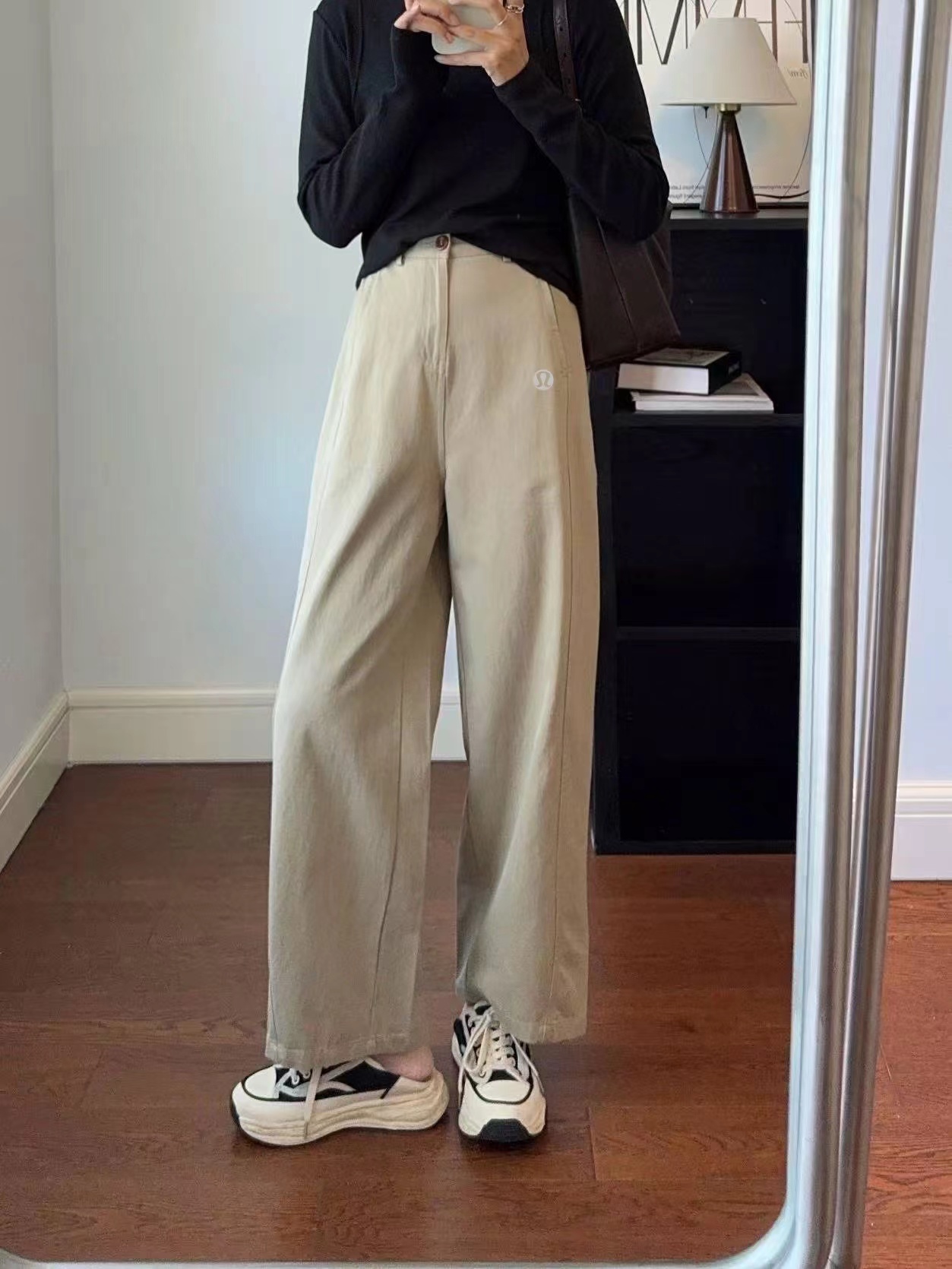 阔腿休闲裤 26年春夏季新款天丝棉休闲裤,阔腿休闲裤,搭配深蓝色牛仔衬衫与黑色穆勒鞋。采用斜纹棉混纺面料,具有一定的挺括感和垂坠感;高腰阔腿设计,能有效修饰腿型,适合梨形身材九分长度露出脚踝,搭配穆勒鞋,既显腿长又不失利落感。可将牛仔衬衫换成白色T恤或针织衫,搭配小白鞋,打造更清爽的夏日造型。若想更正式,可搭配浅色系西装外套和乐福鞋,适合职场通勤。可搭配同色系的卡其色或棕色包包,让整体造型更具协调感。