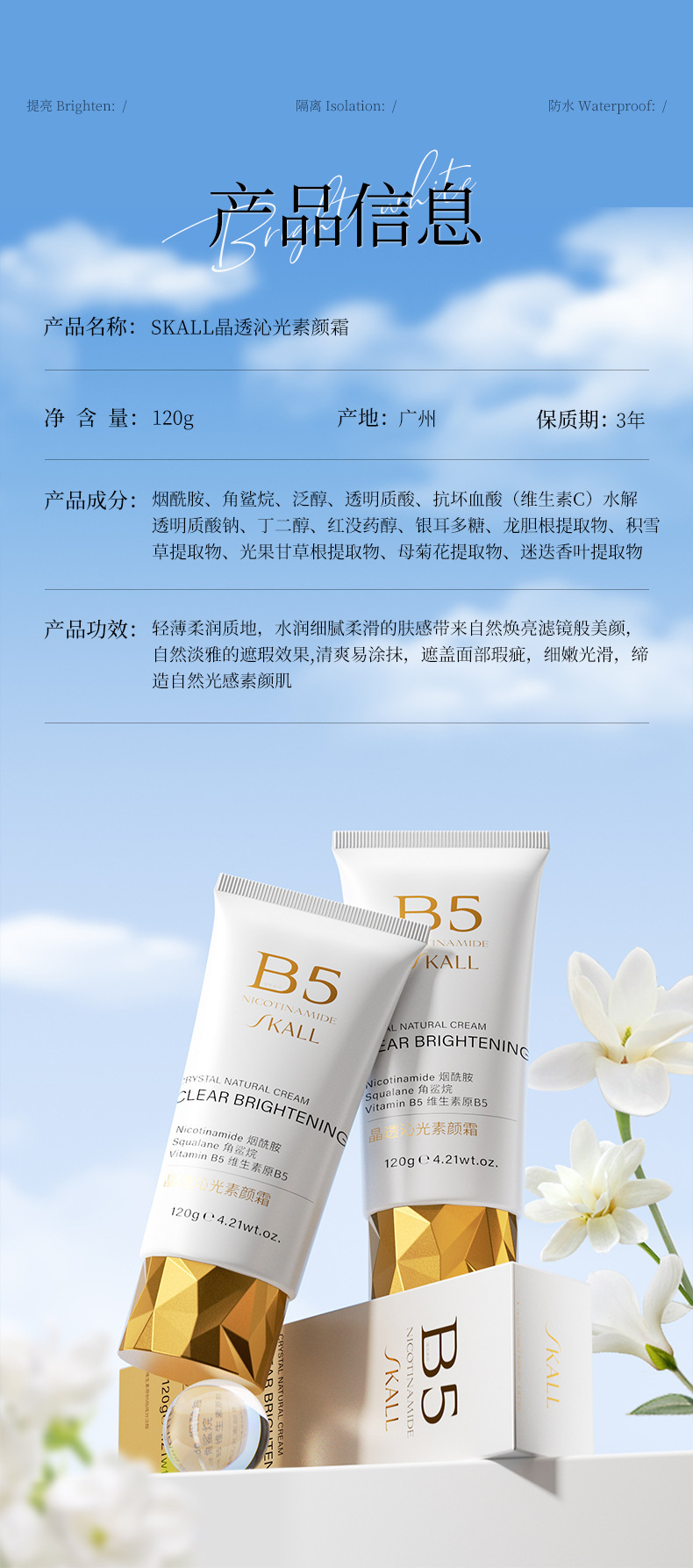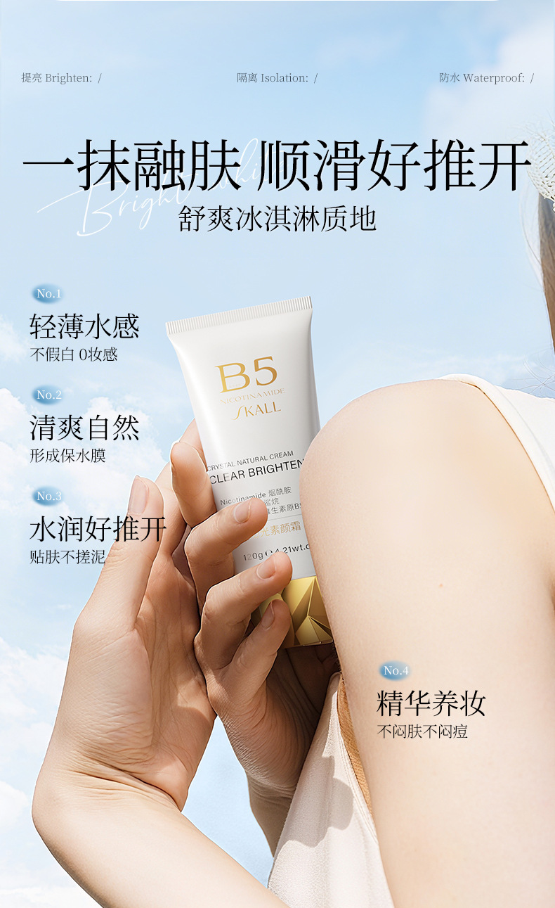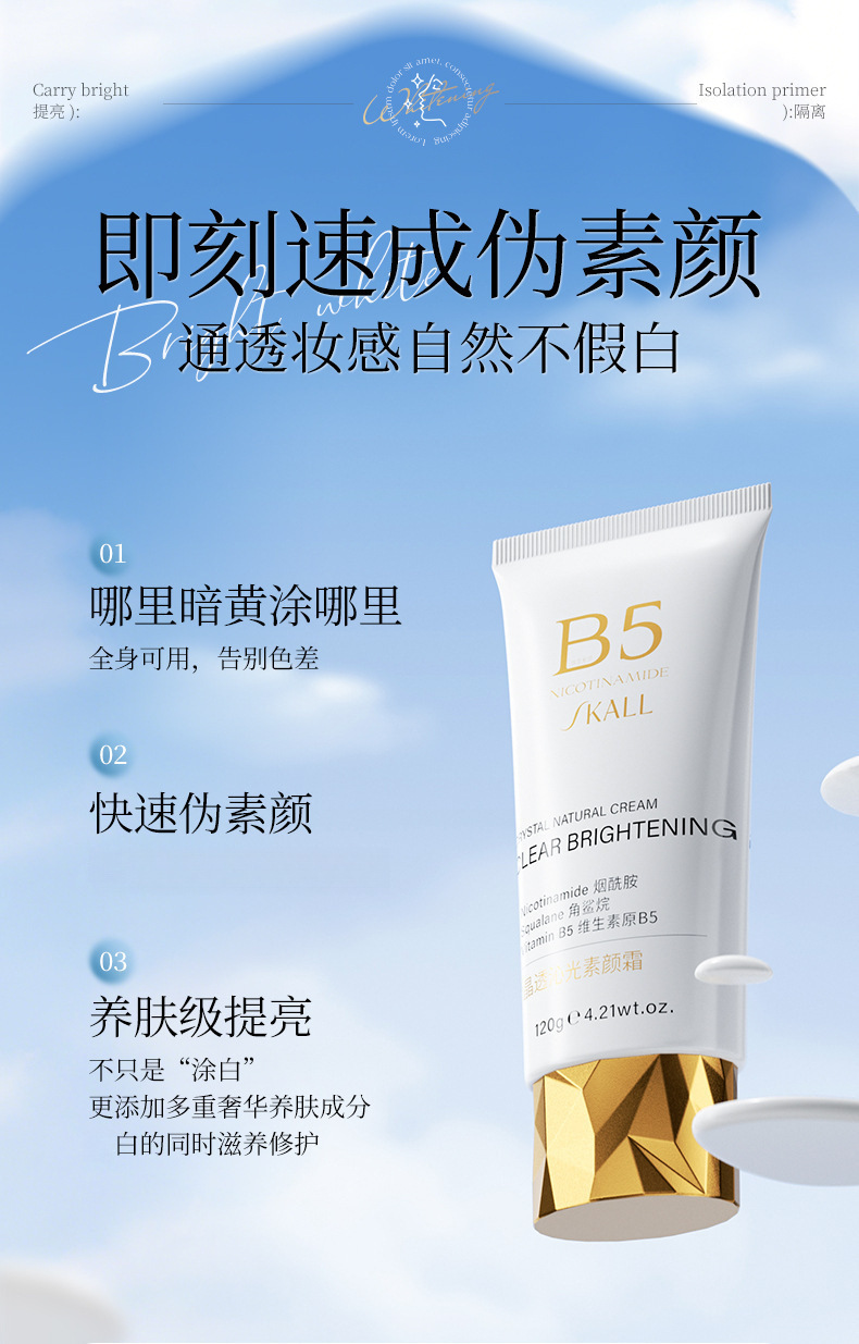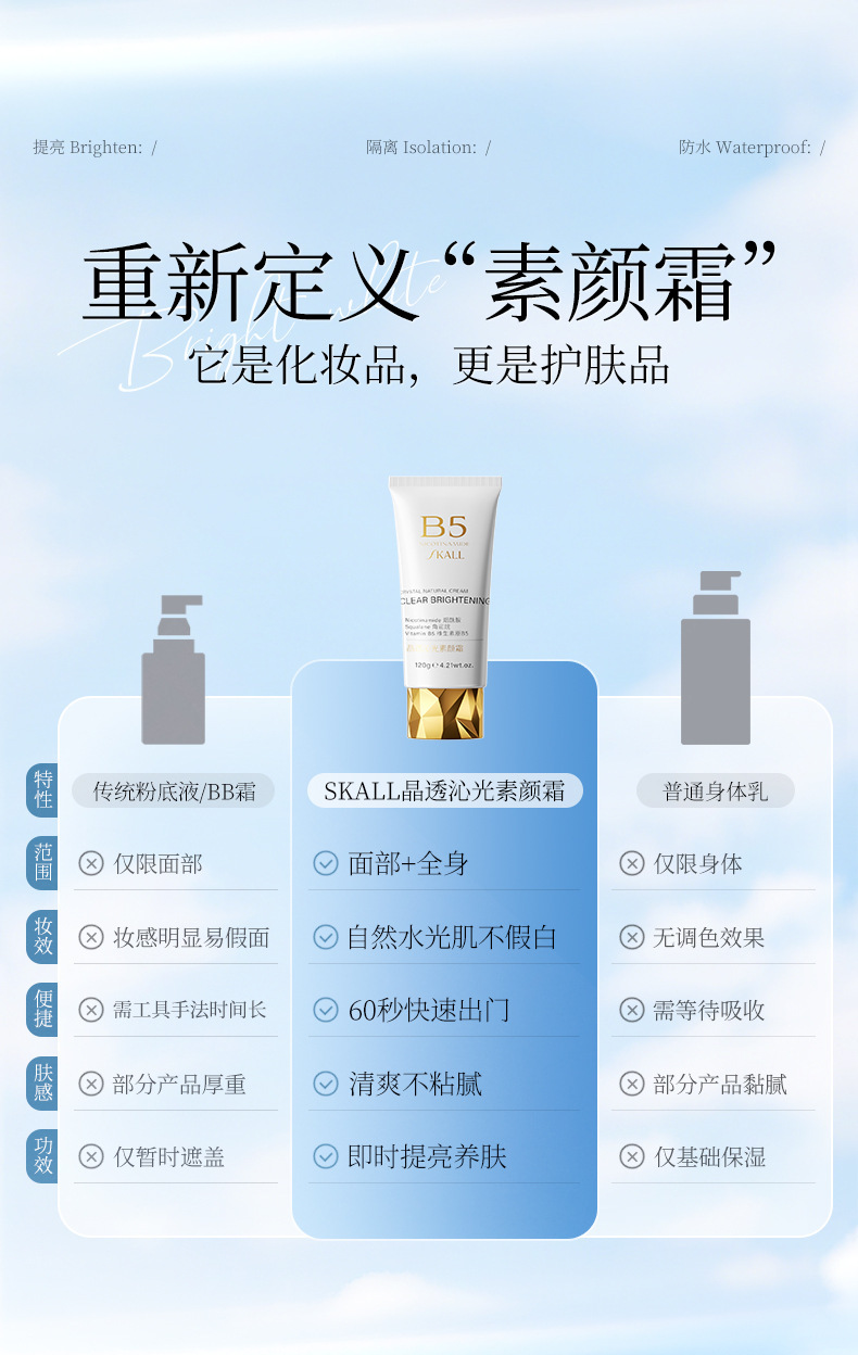 【粉丝专属❗️维生素原B5素颜霜】告别暗/黄/黑,开启高光时刻,全身可用的“冷白皮”滤镜!懒人脸部身体裸妆无需卸妆全身提亮肤色隔离遮瑕三合一