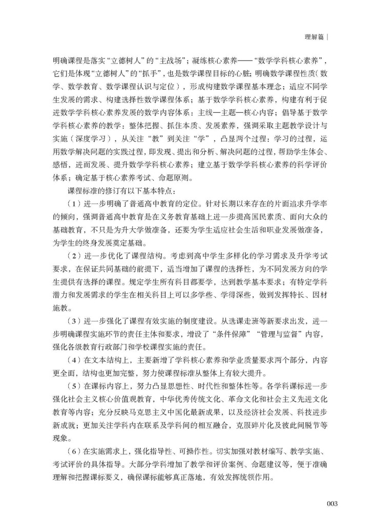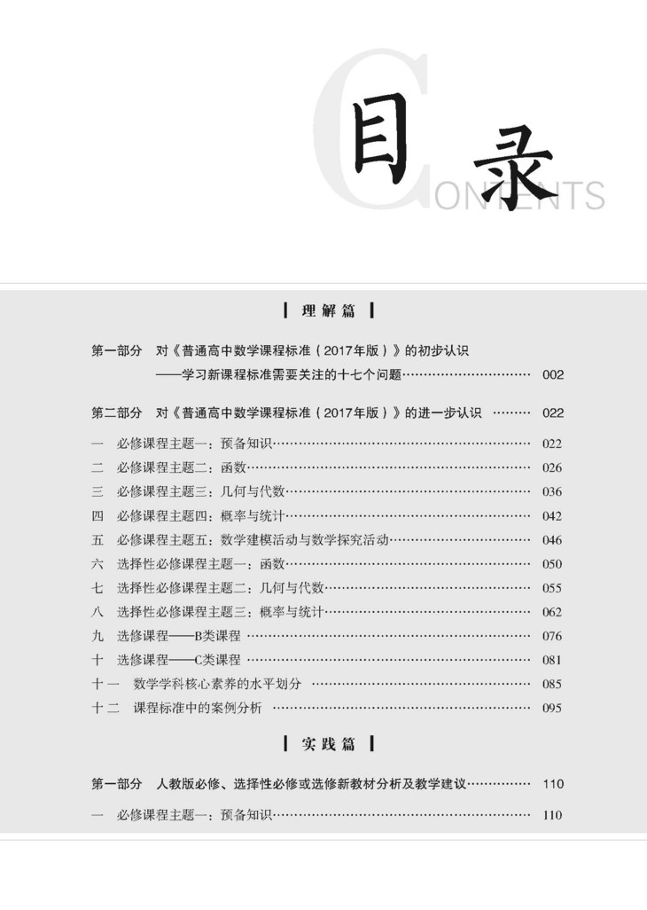 本书包含“认识篇”和“实践篇”两大部分内容。“认识篇”一方面介绍了对《普通高中课程标准(2017年版)》的总体认识以及与2003年版课程标准的比较,另一方面介绍了各学科各模块的总体框架、内容要求和素养要求。“实践篇”对新版教材各模块进行了细致分析,并提供了教学建议、优秀的教学设计及案例分析、参与实验教学的教师教学体会、学业质量水平与考试评价的尝试,以及来自参与实验教学的学生和家长的感想。本书在诸多方面都有所突破和创新,为教师落实新的课程标准、改变原有的教学行为、提高教学质量标示了方向。
