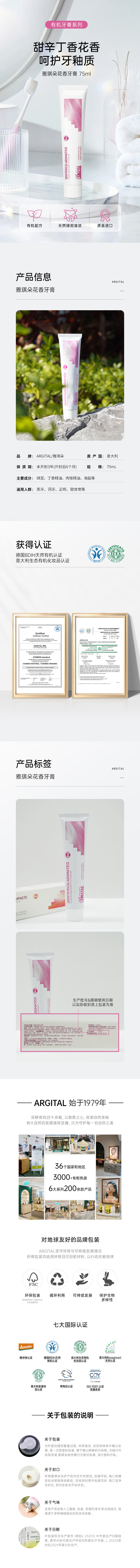 雅琪朵:花香牙膏75ml/花香牙膏 减少洞牙黑牙呵护牙釉质
