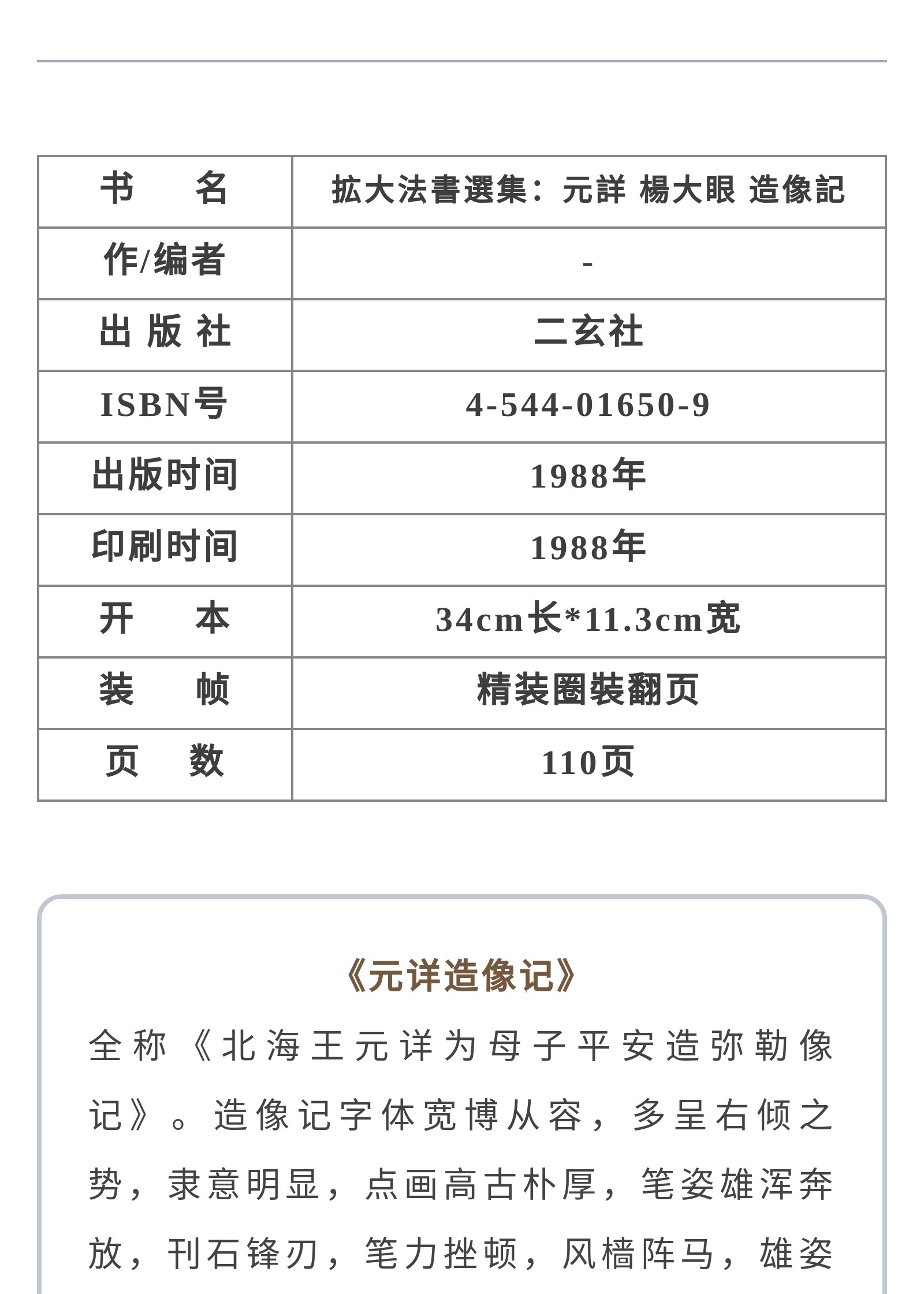 【绝版好书】拡大法书选集--楊大眼、元詳造像記