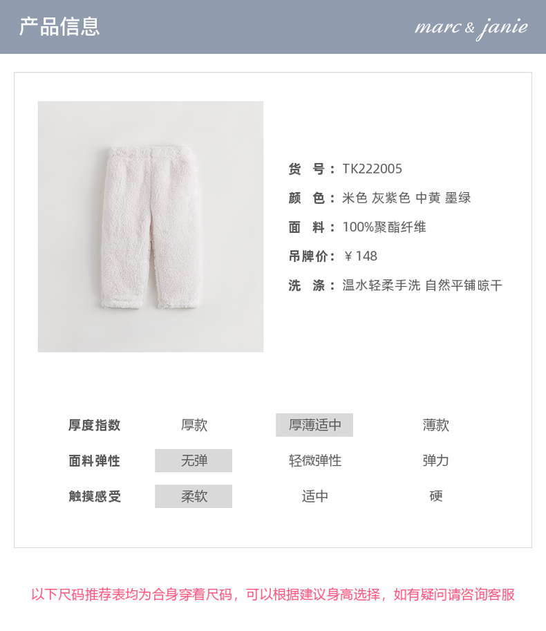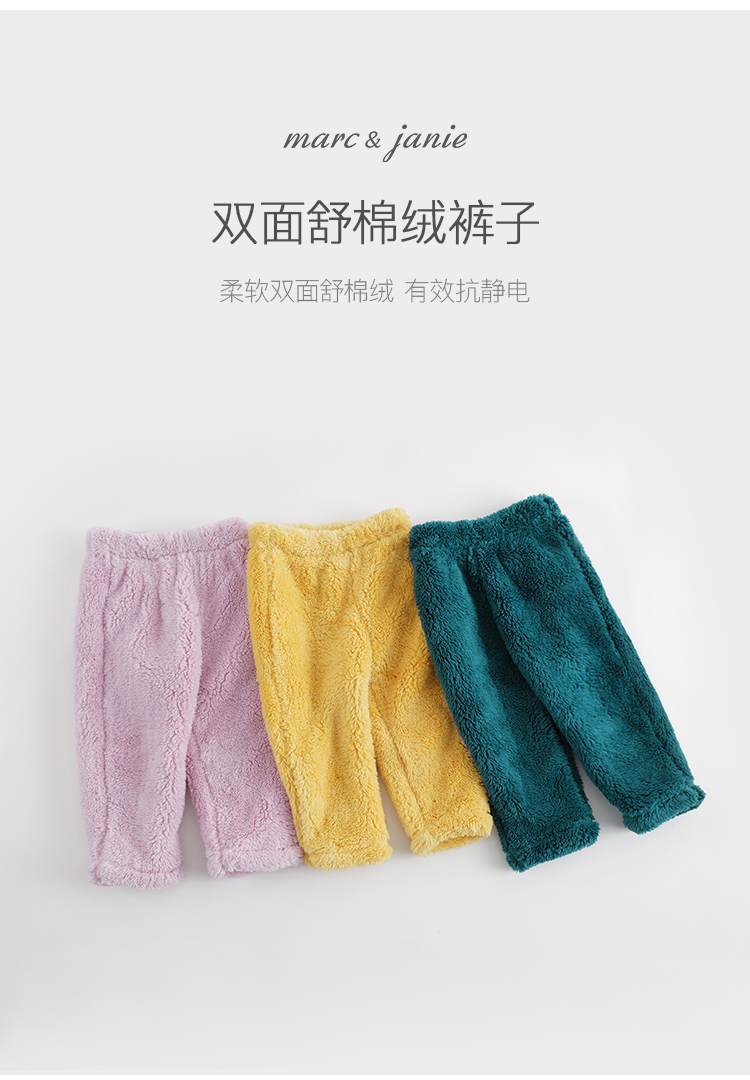 马克珍妮冬装新款 男女童双面舒棉绒宽松裤子家居服222005