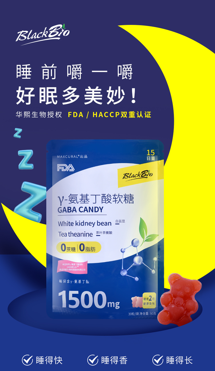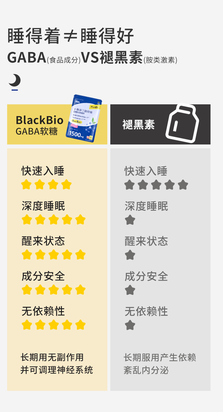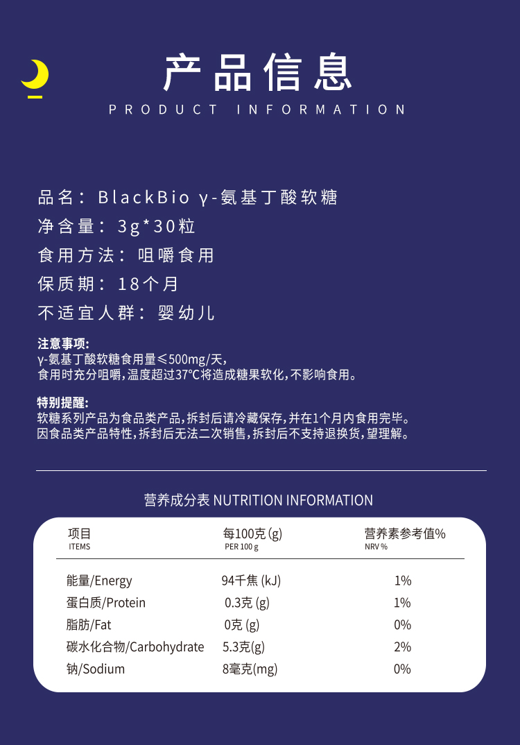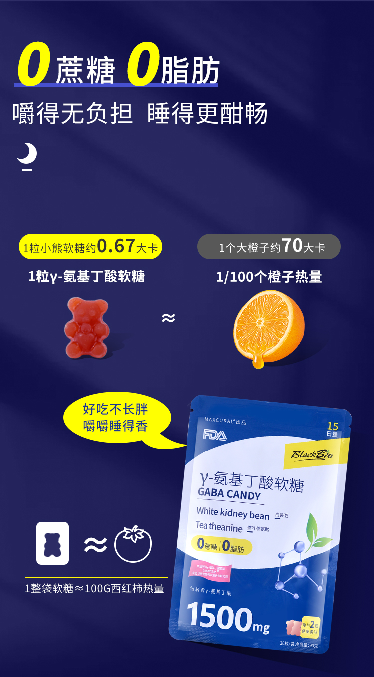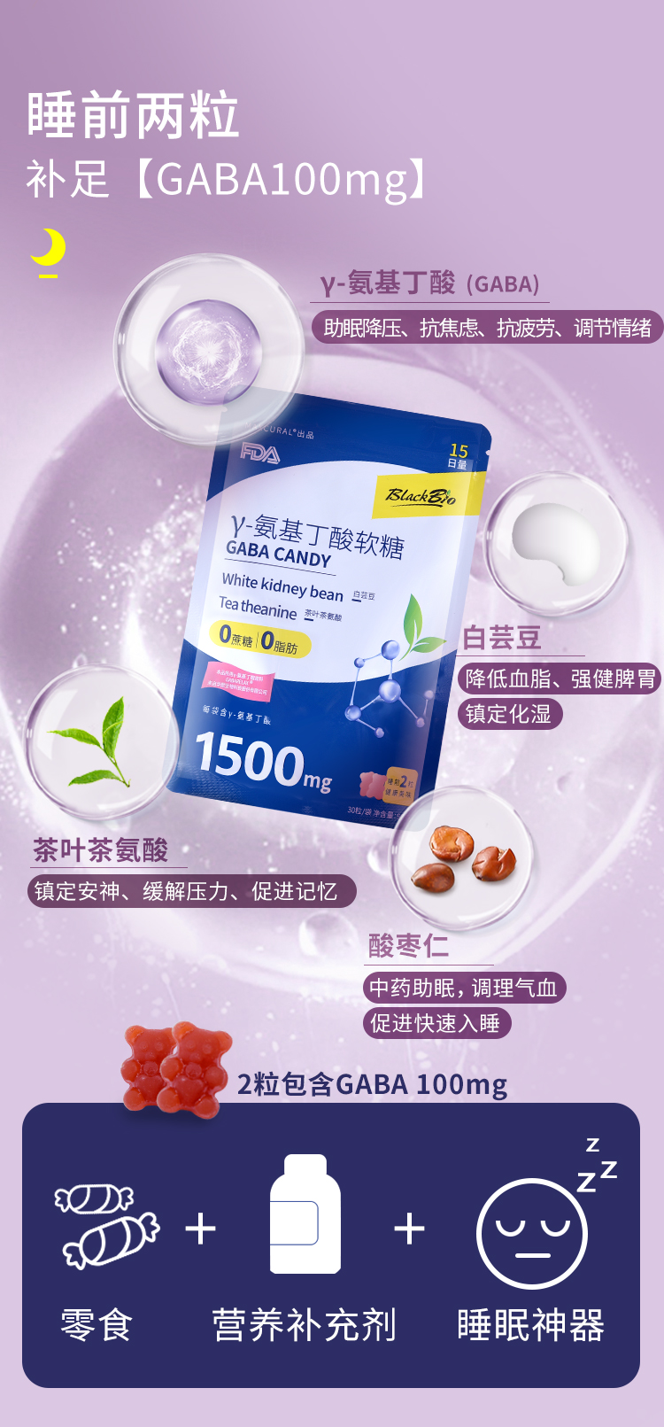【睡前嚼一颗,轻松入睡】BlackBio博兰贝深度睡眠(GABA)软糖30粒/袋安眠缓解压力焦虑0蔗糖0脂肪嚼得无负担睡得更顺畅