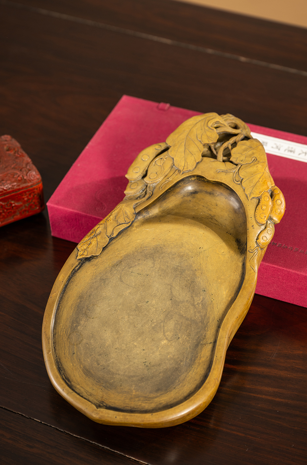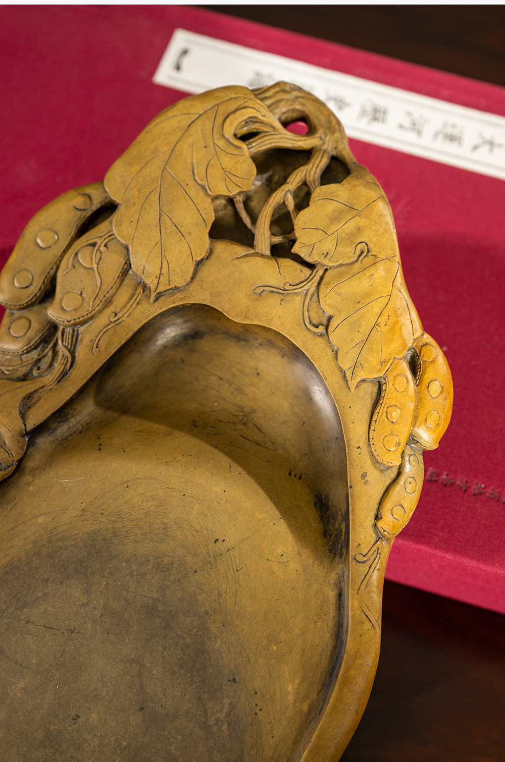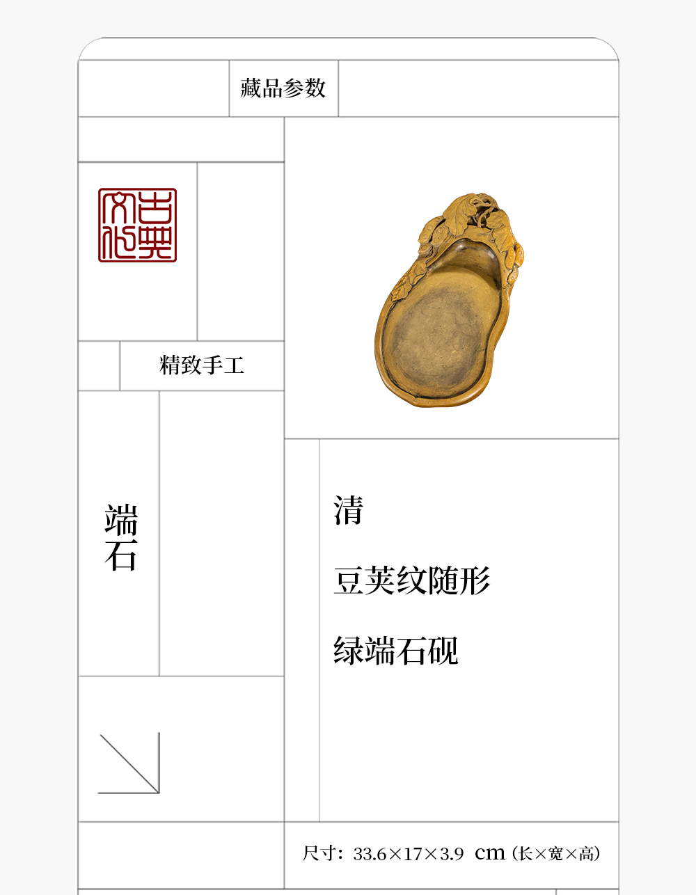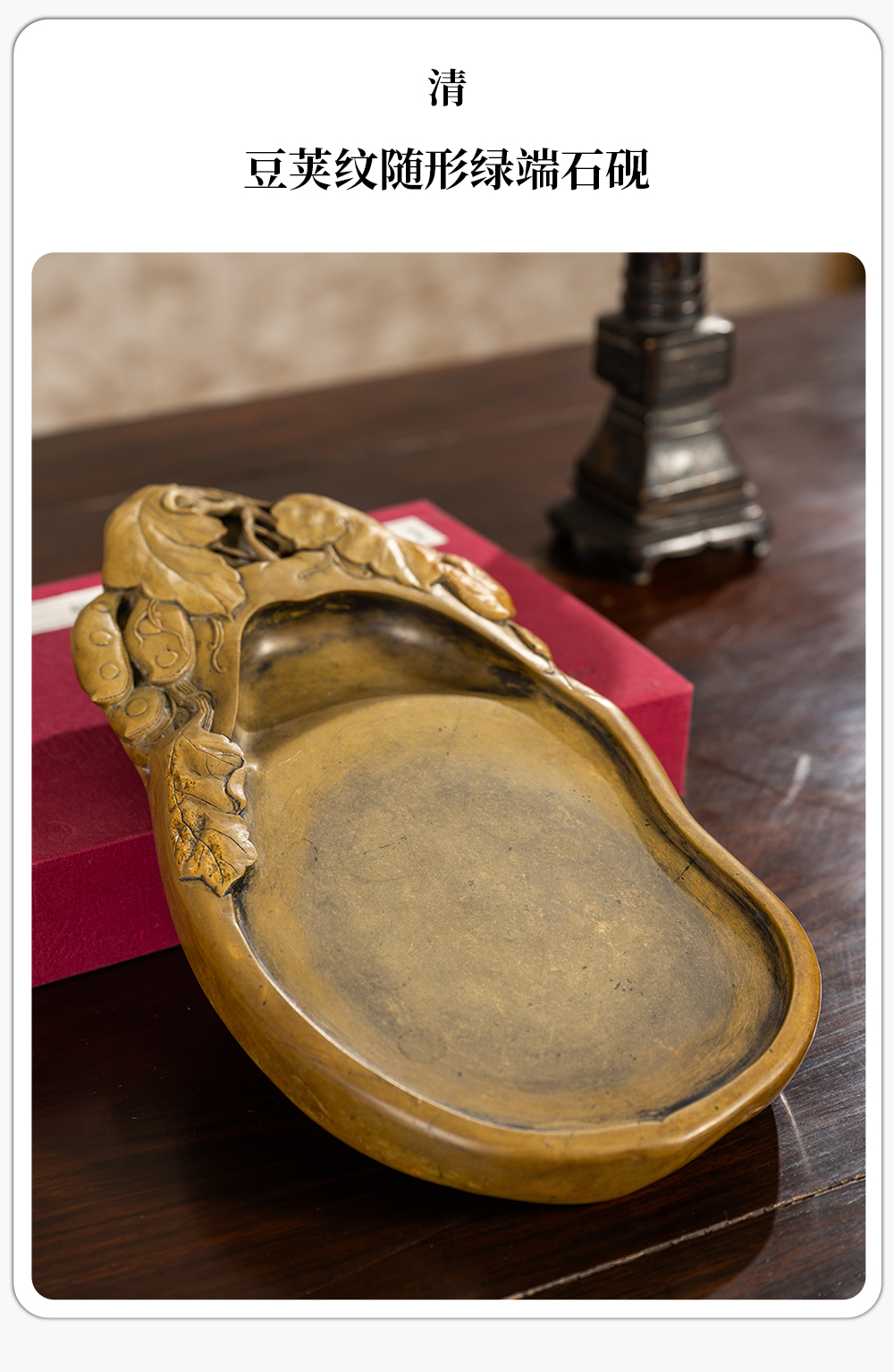清 豆荚纹随形绿端石砚