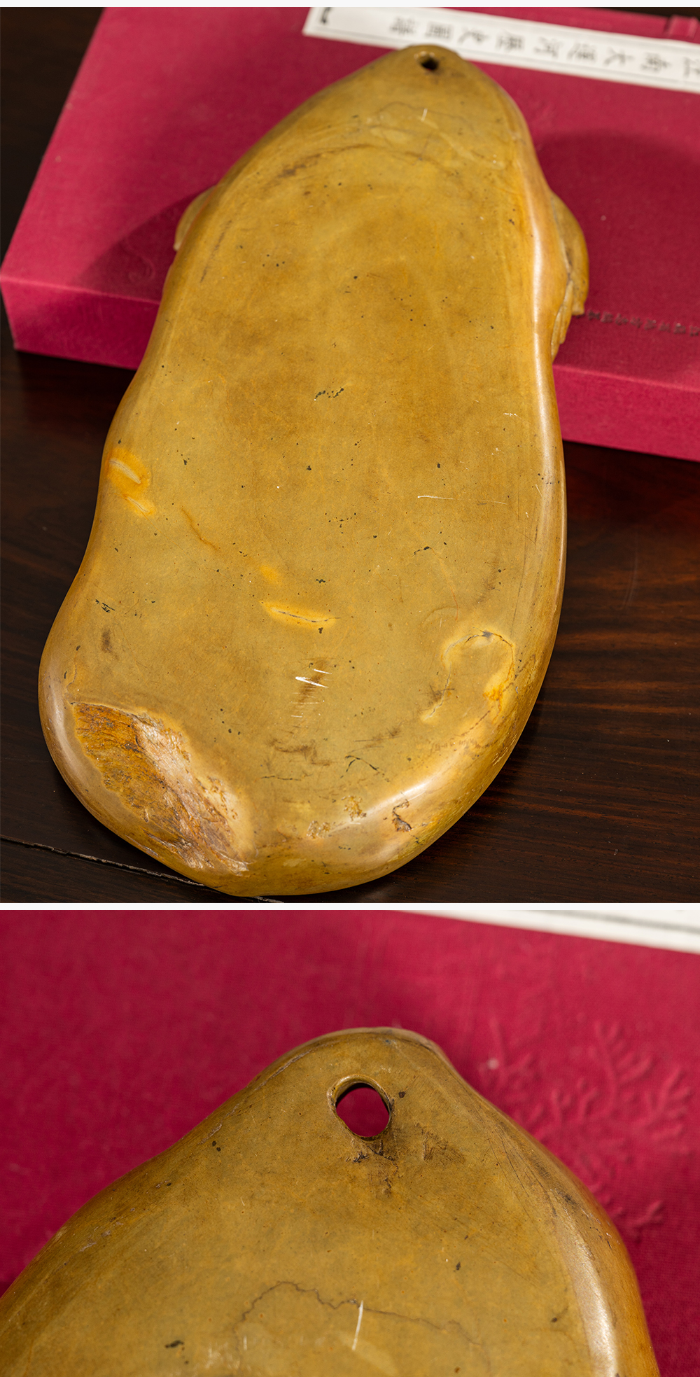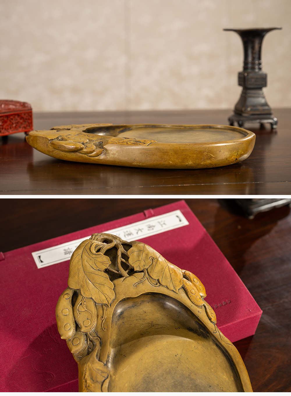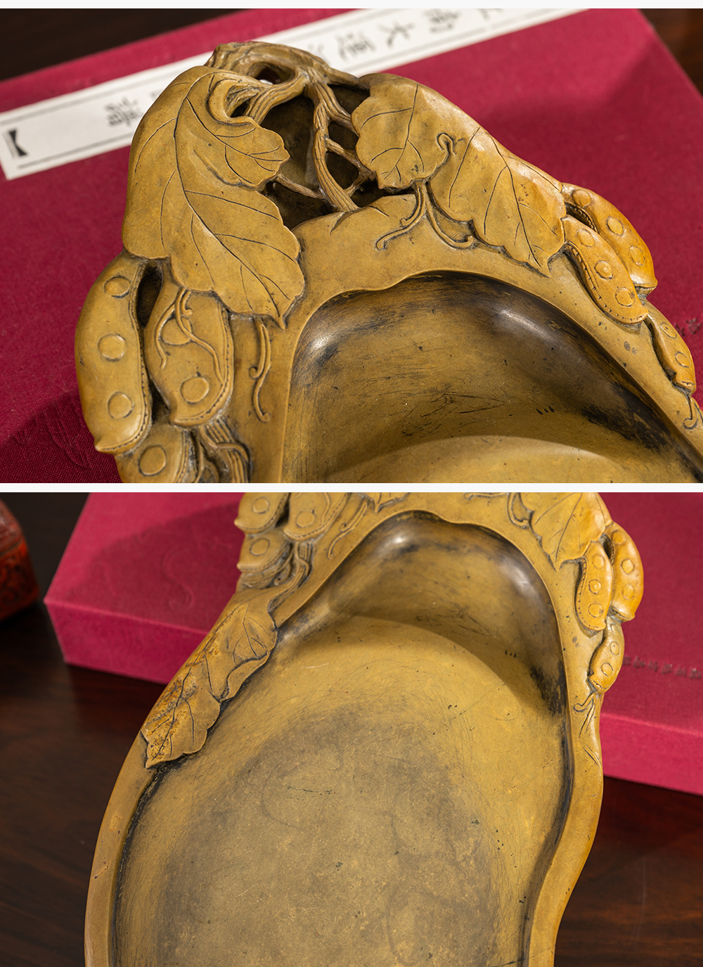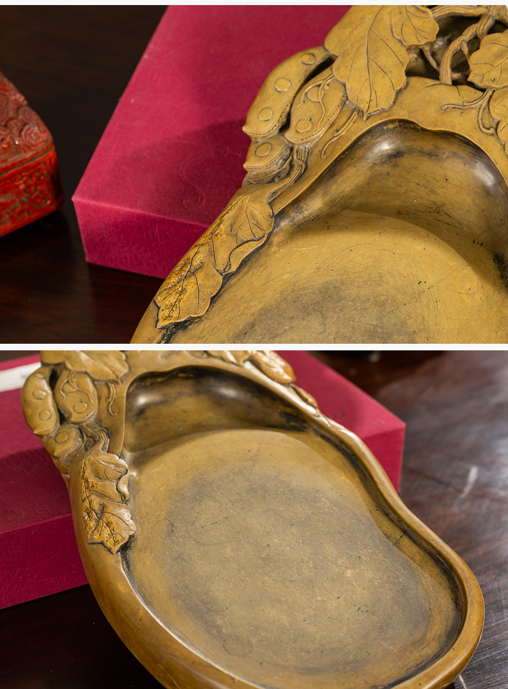 清 豆荚纹随形绿端石砚