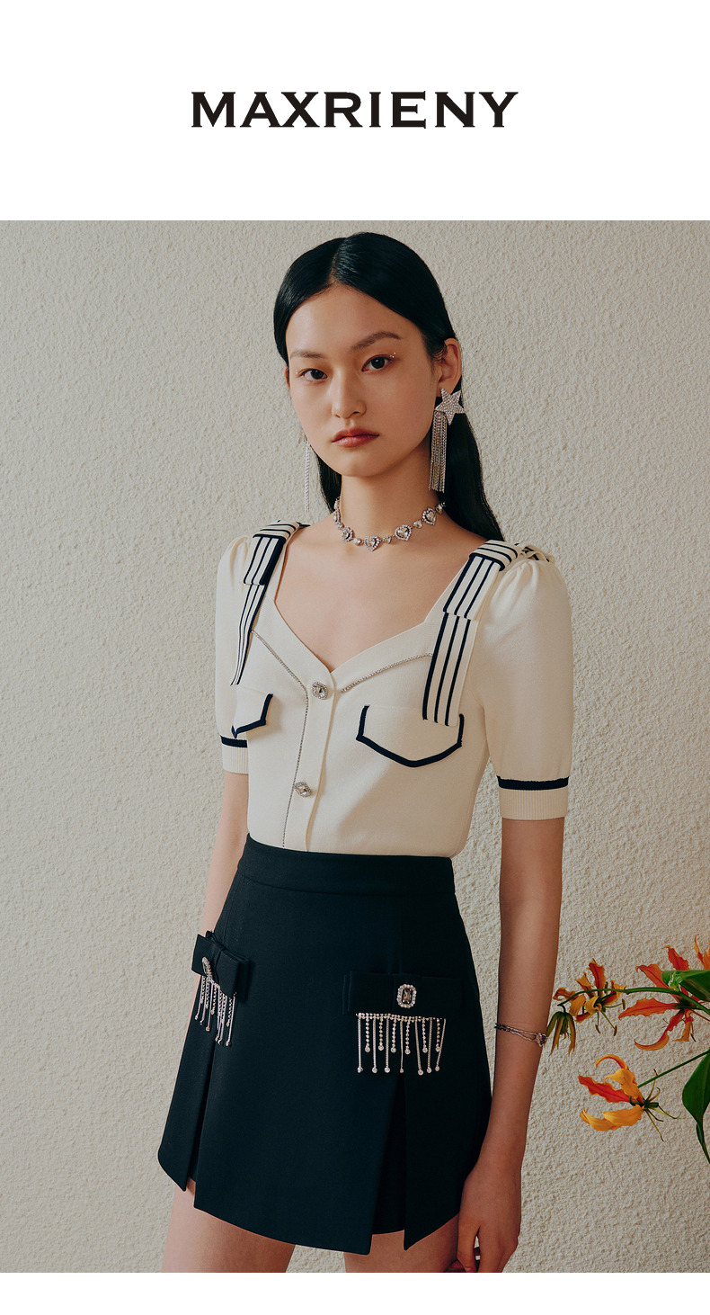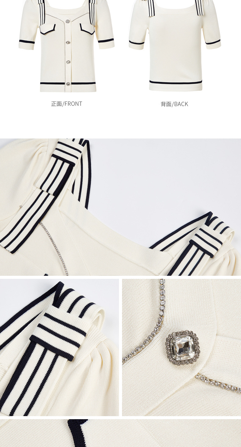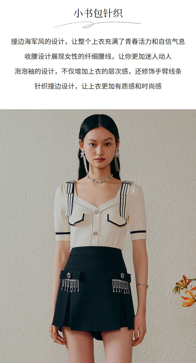 MAXRIENY千金海军风上衣复古甜美收腰泡泡袖针织衫(货号:MC88SW308)