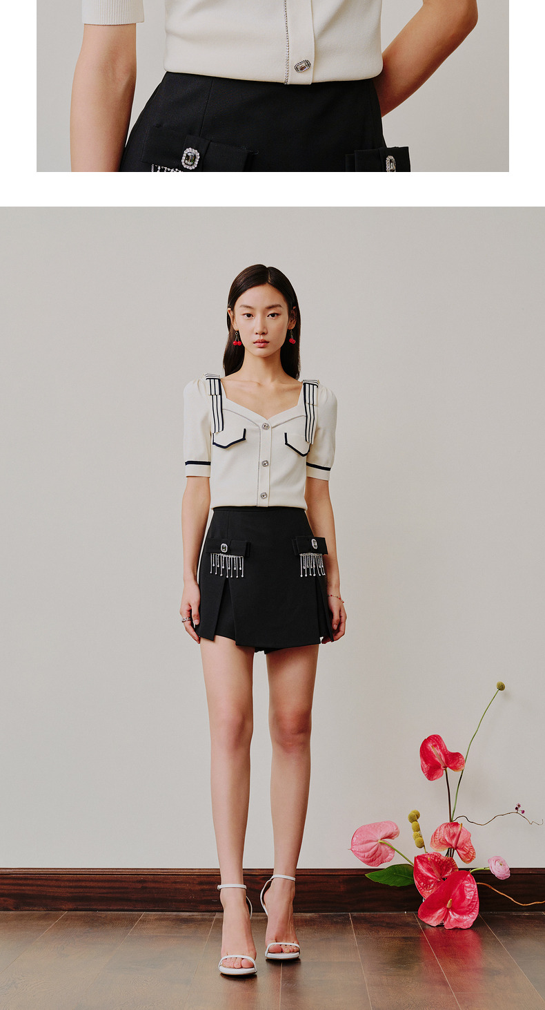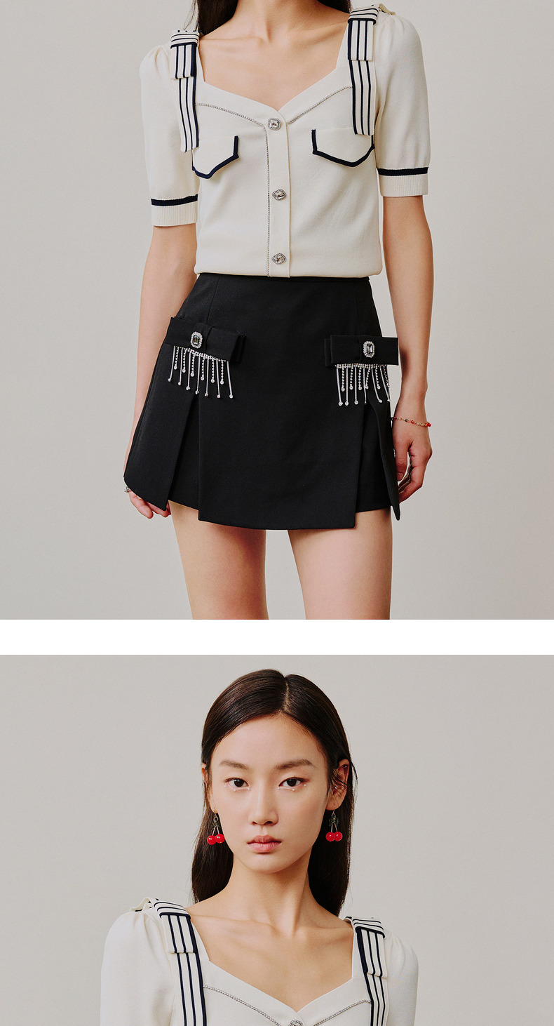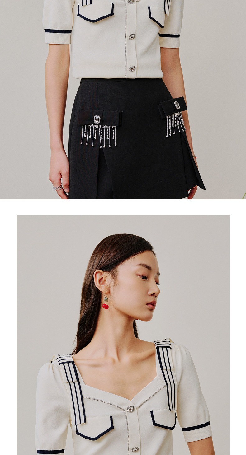 MAXRIENY千金海军风上衣复古甜美收腰泡泡袖针织衫(货号:MC88SW308)