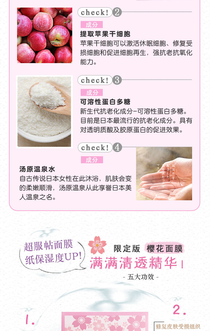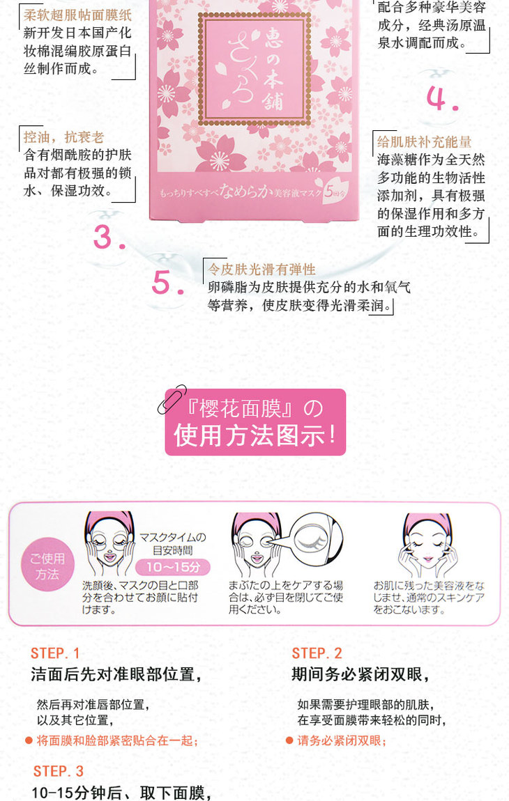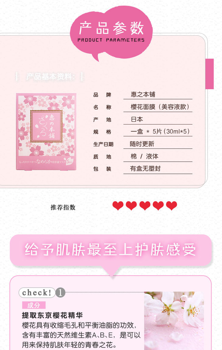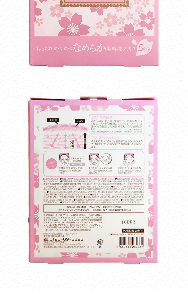 惠本铺 樱花限定温泉水美容液面膜 5片入
