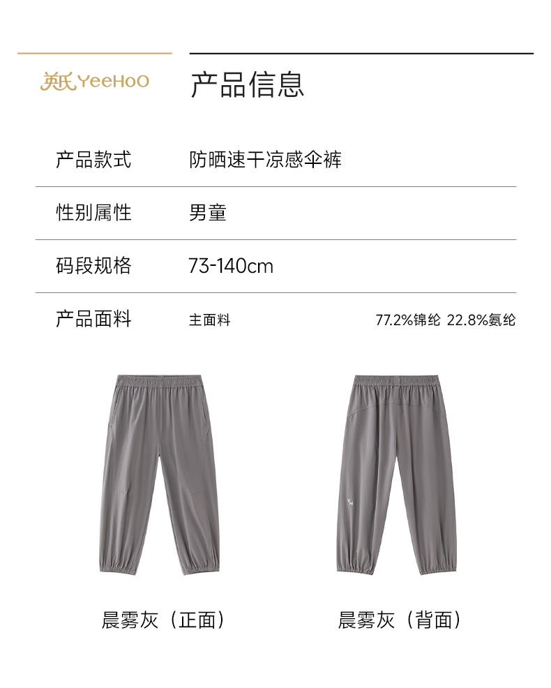 【商场同款】英氏儿童长裤男童夏季裤子凉感防晒百搭裤装新款
