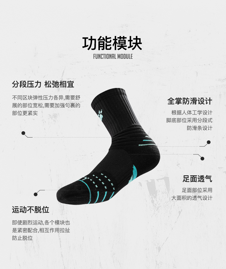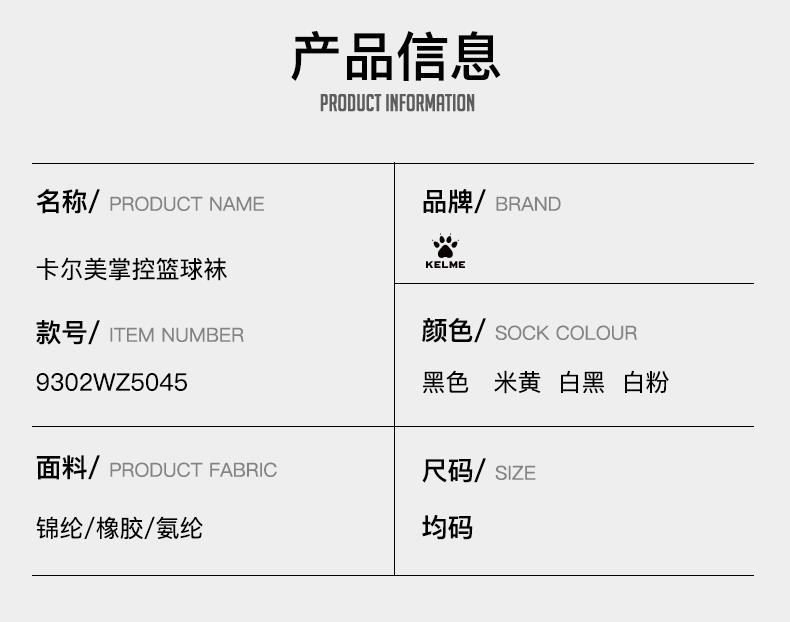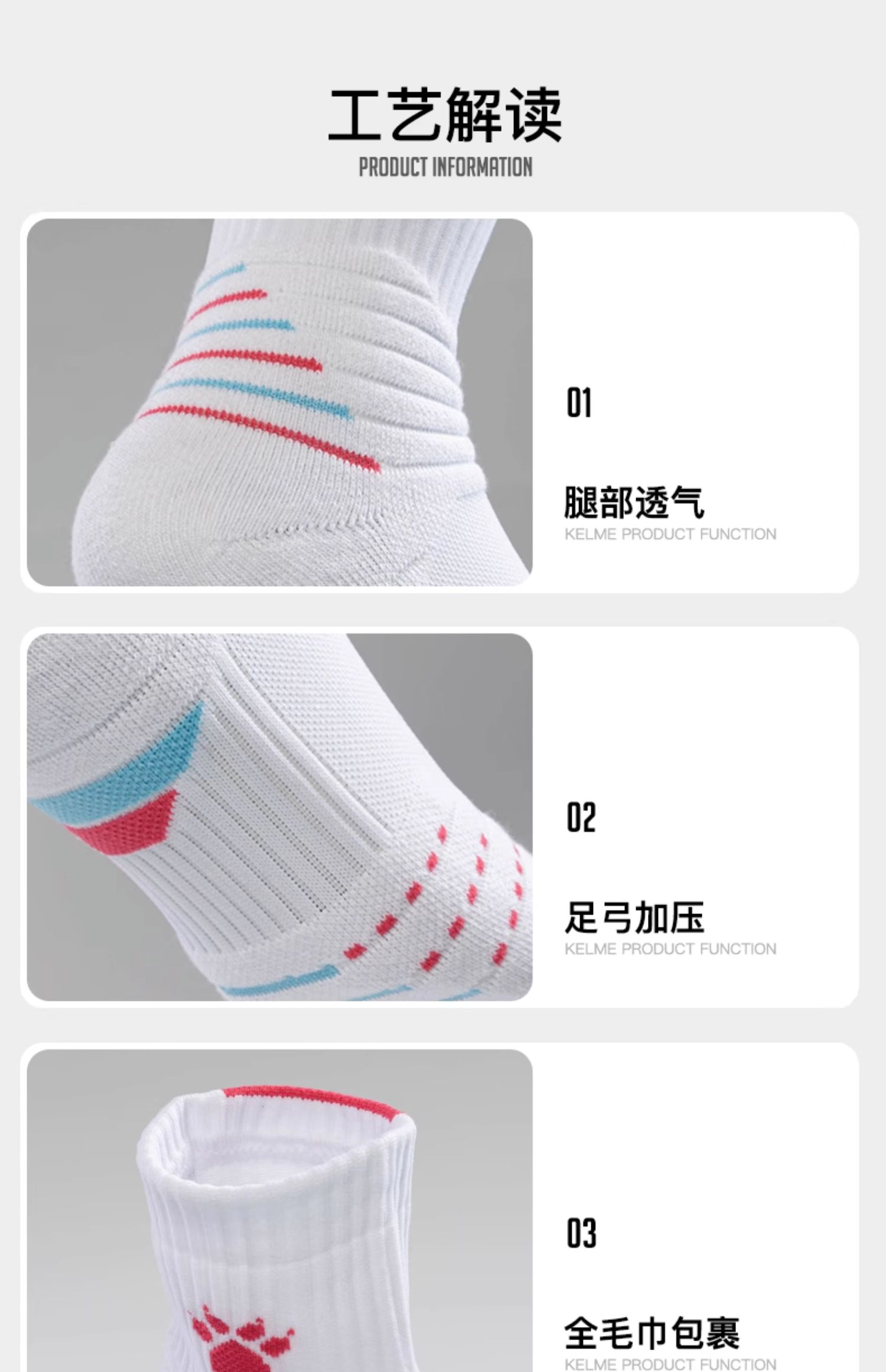 KELME卡尔美篮球袜中长筒透气防滑减震成人运动袜专用袜子