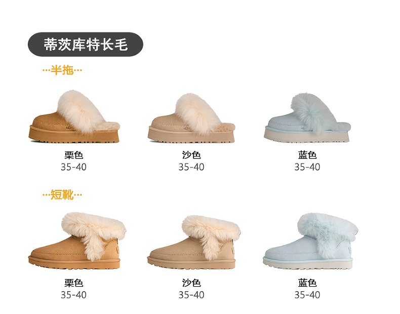 放心推 拍下5天左右发货 ✈️📦蒂茨库特长毛‼️ 油叽叽独家单‼️25年最新大爆款长毛系列蒂茨库特mini短靴➕三公分毛拖儿!!!全网真的火疯了,尤其是这个珊瑚蓝。全球都断货。溢价都买不到!!!它是那种奶蓝色,非常好看,嫩嫩的很温柔,市面上目前没有对版的皮料 可以随便去问去对比 有明显的色差。所以今天的价格闭眼来搞吧。‼️一共2个系列,都是三色。巨好看啊,强烈推荐你们哪个颜色都别错过。⚠️关于尺码 正码 35 36 37 38 39 40