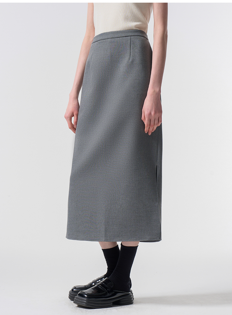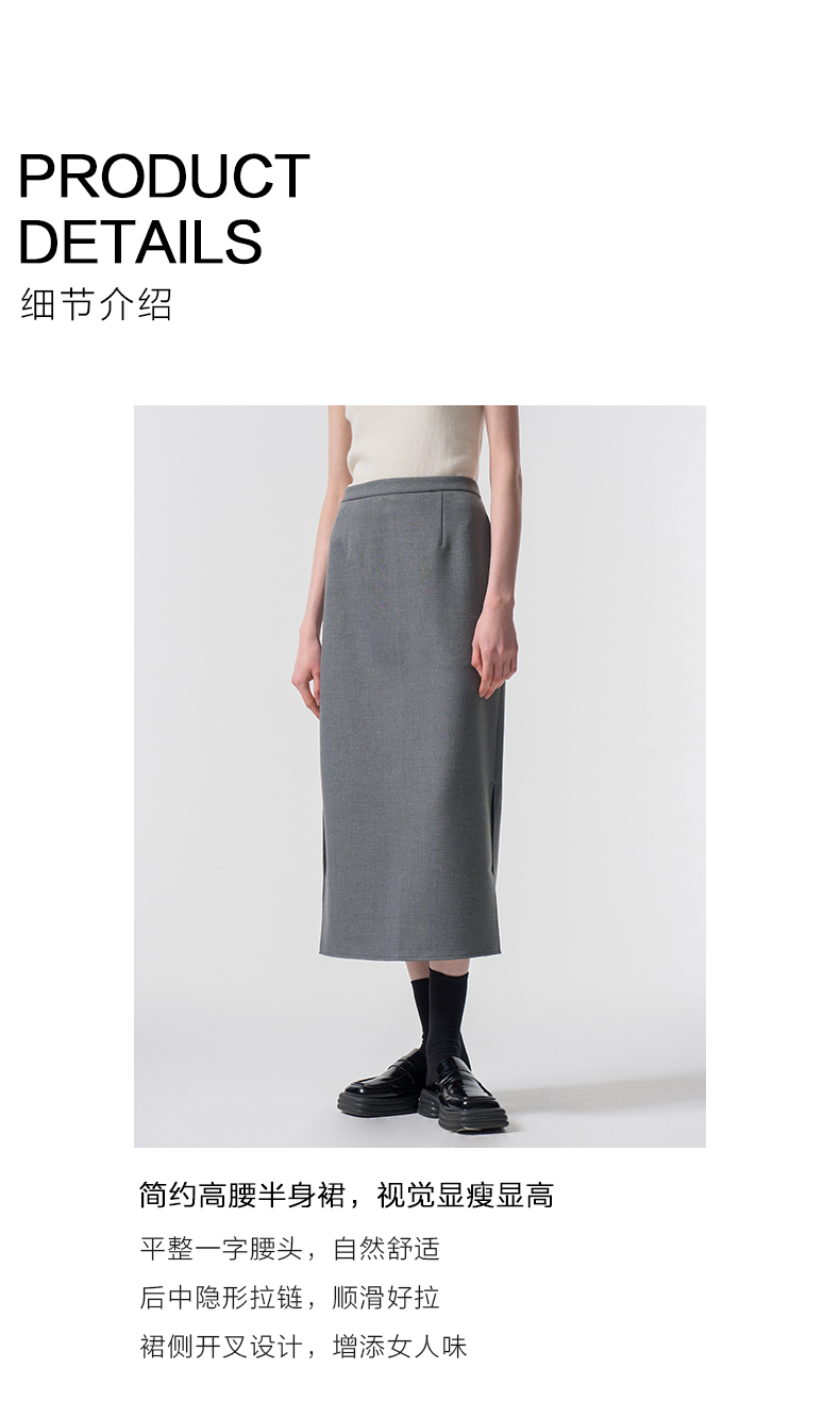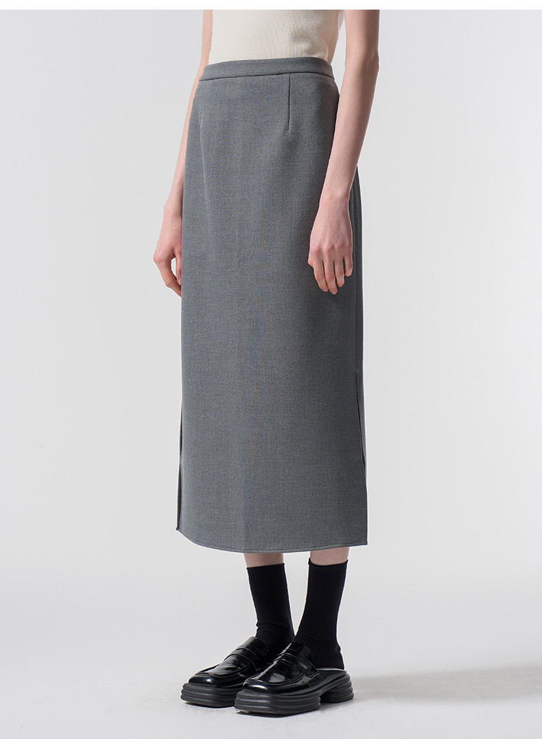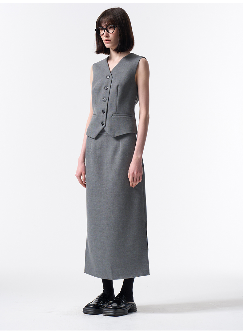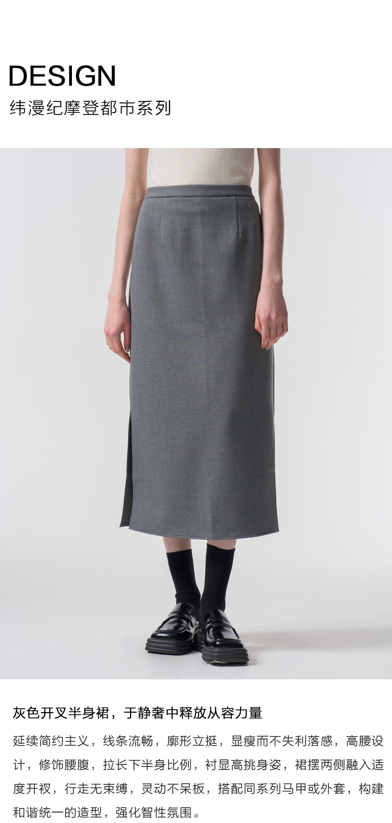 VIMAGE纬漫纪极简静奢轻职场廓形质感灰色开叉半身裙2026春季新款V2506201