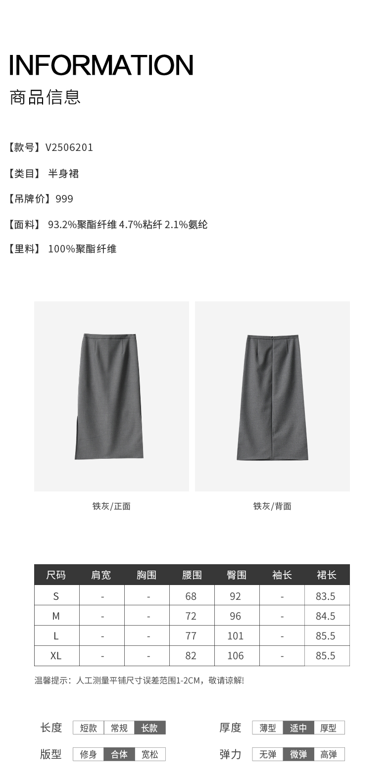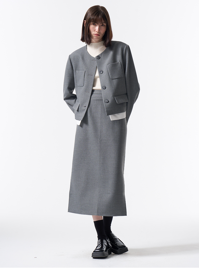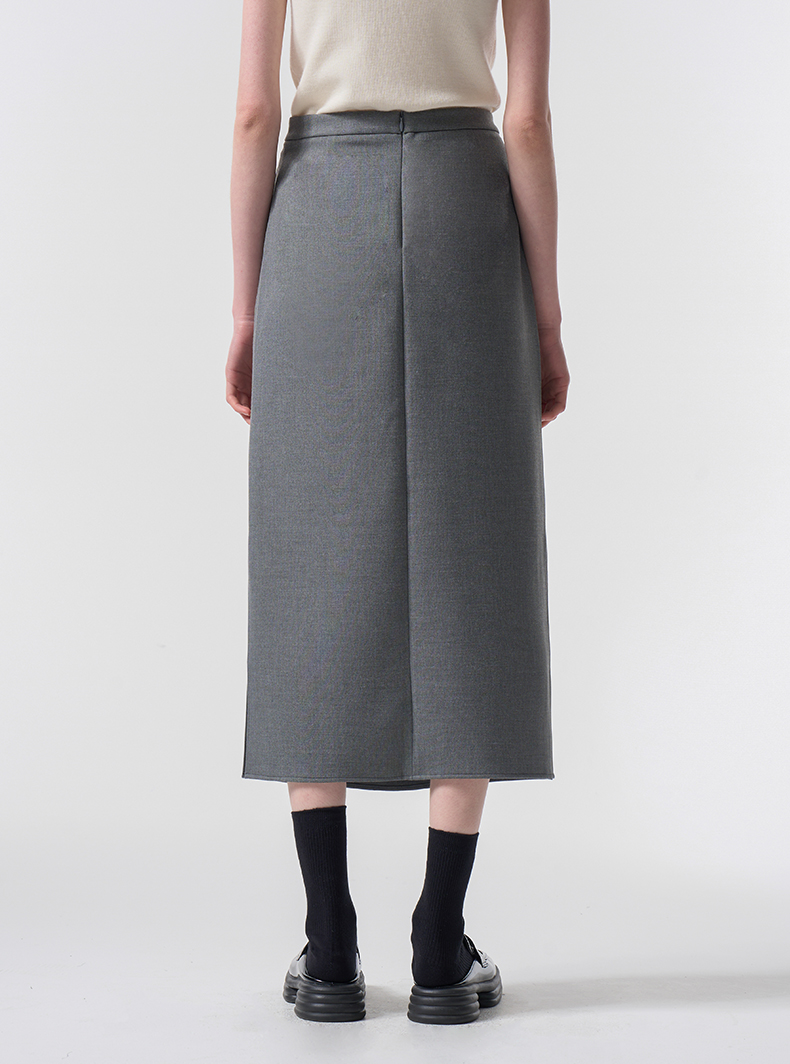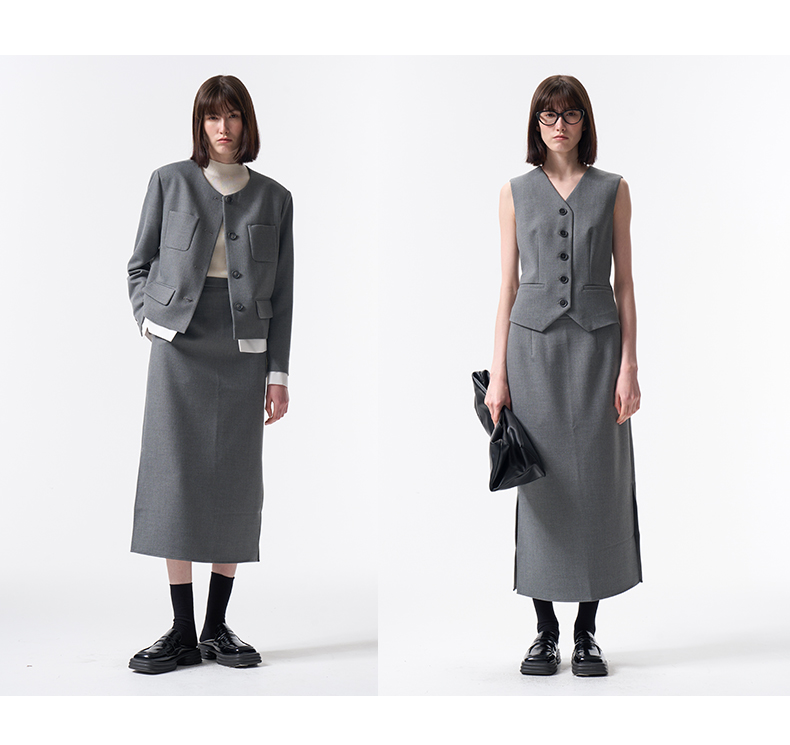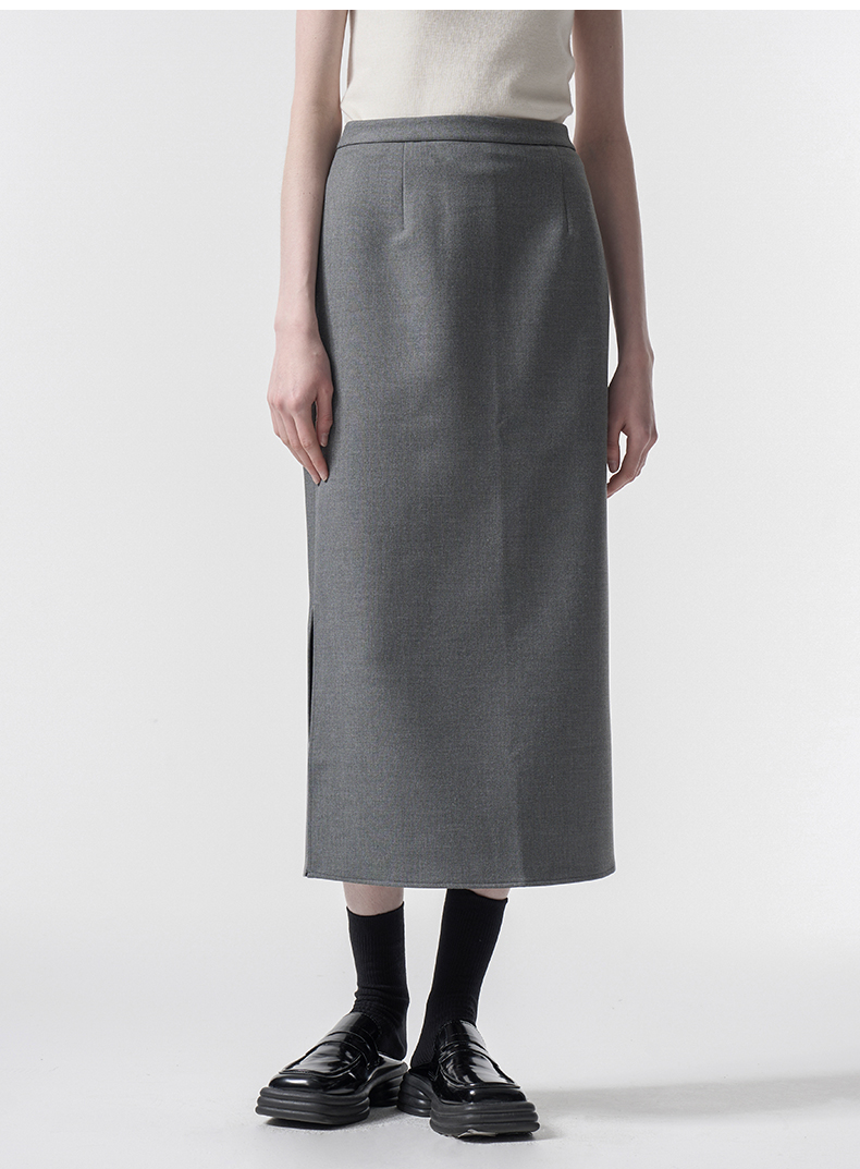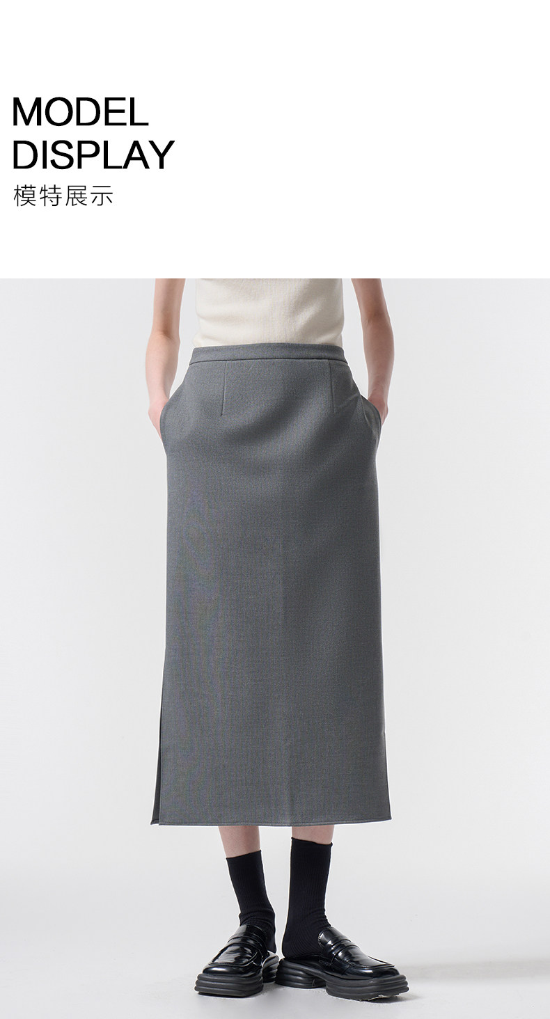 VIMAGE纬漫纪极简静奢轻职场廓形质感灰色开叉半身裙2026春季新款V2506201