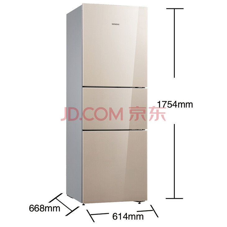 西门子(SIEMENS) KG28FS23EC 274升 三门冰箱 电脑控温 绿色零度 三循环 玻璃面板(浅金色)