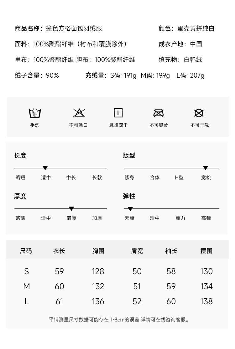 嘭嘭小面包 轻盈撞色方格面包羽绒服FO475223D