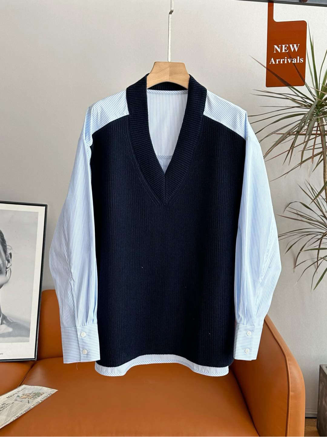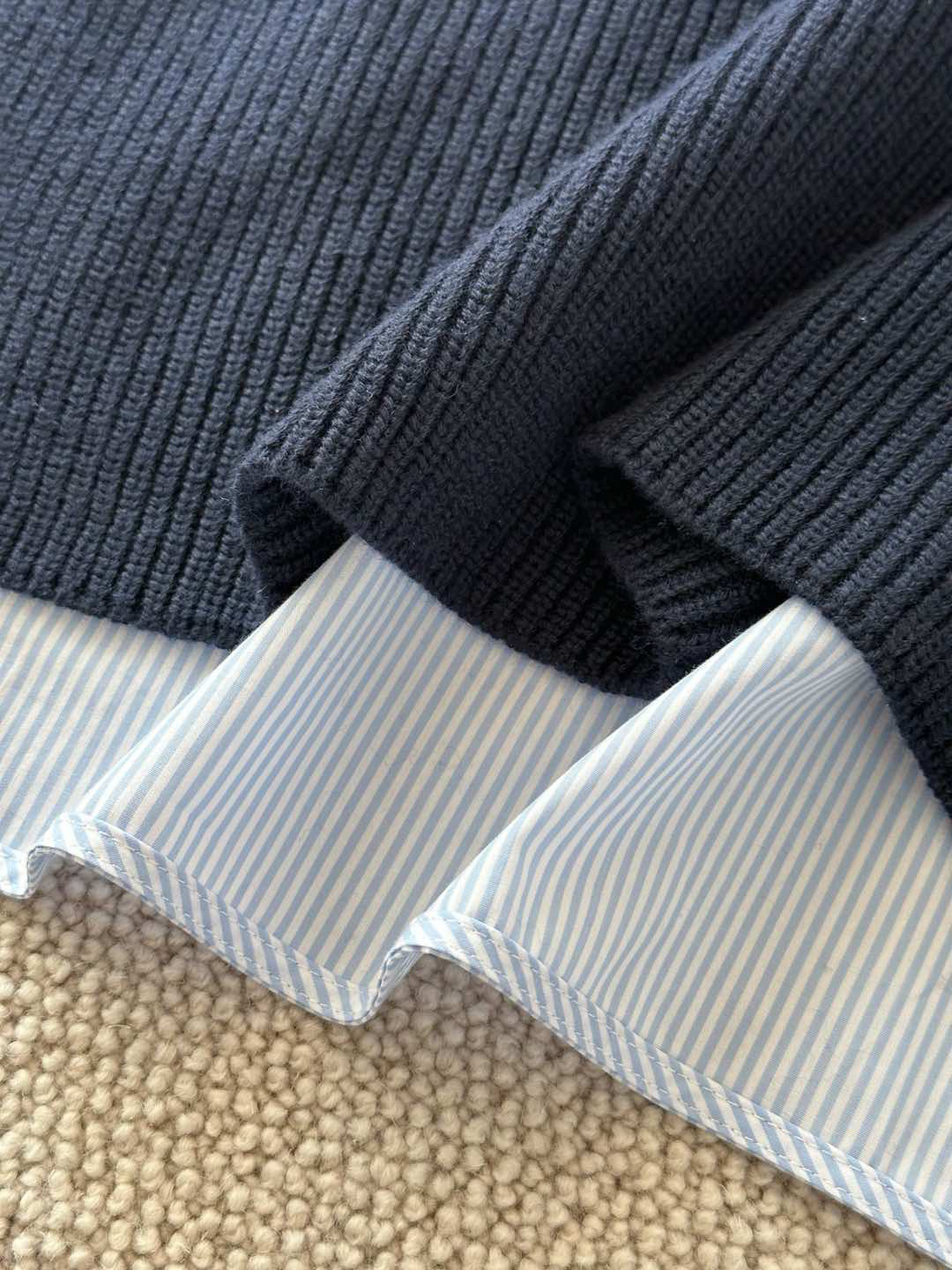 猫店的热销爆款🔥假两件拼接的设计超有造型感的,上身更是好看,慵懒又清冷,真的很绝很喜欢,单穿叠穿外套都OK~不用费力就有那种韩系氛围感!就是那种邻家乖乖女 但又自带气场的气质感