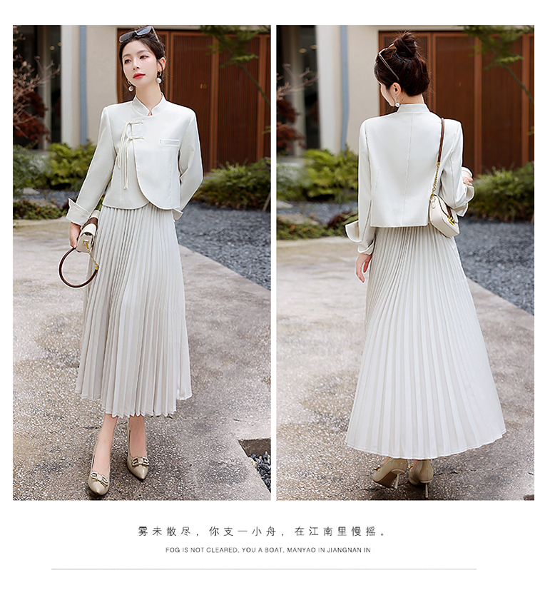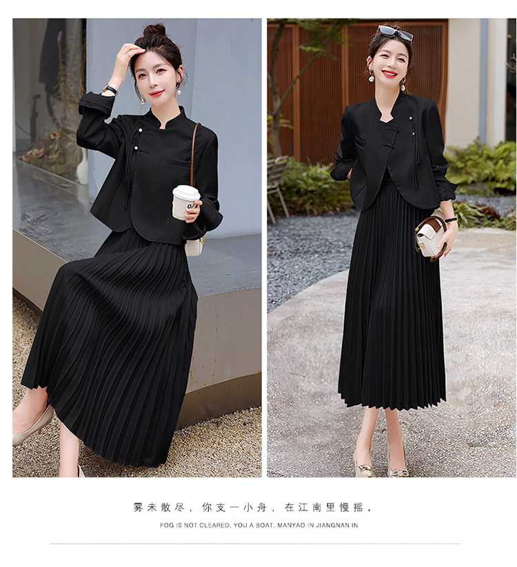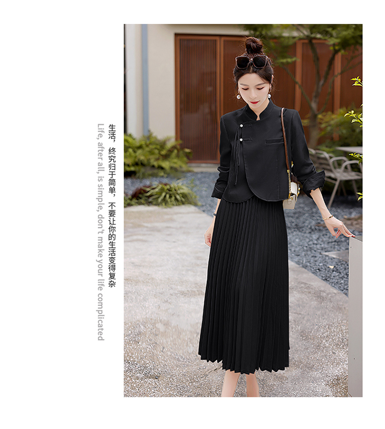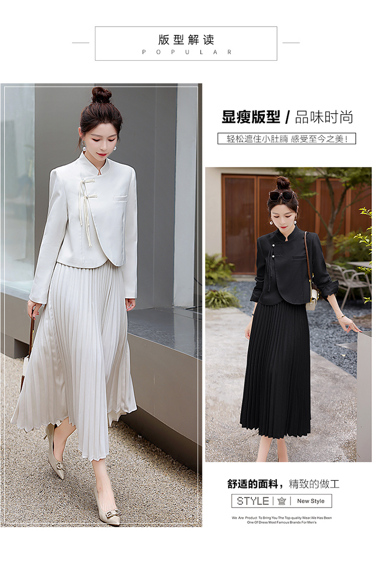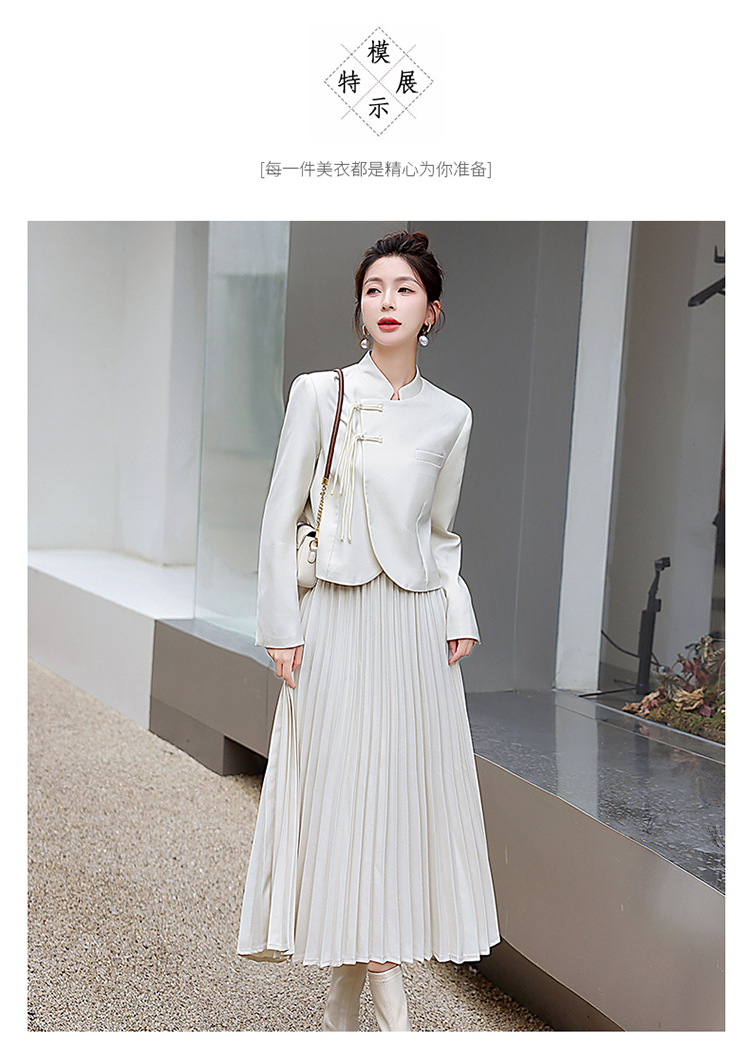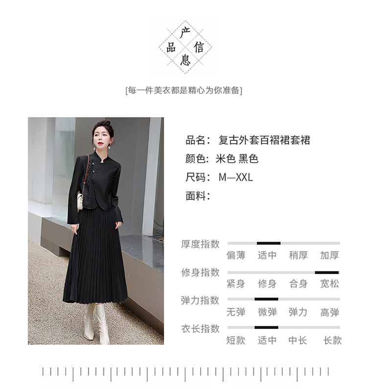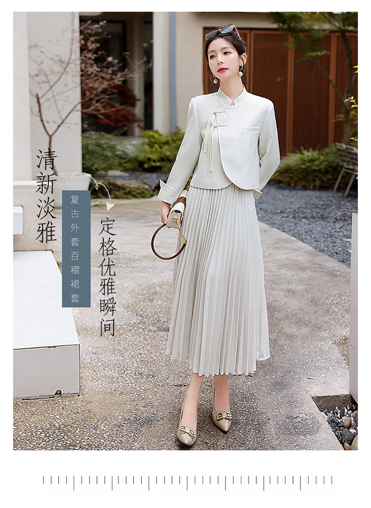 秋季新款,复古气质立领短款外套百褶裙半裙套装HR-MJA3255