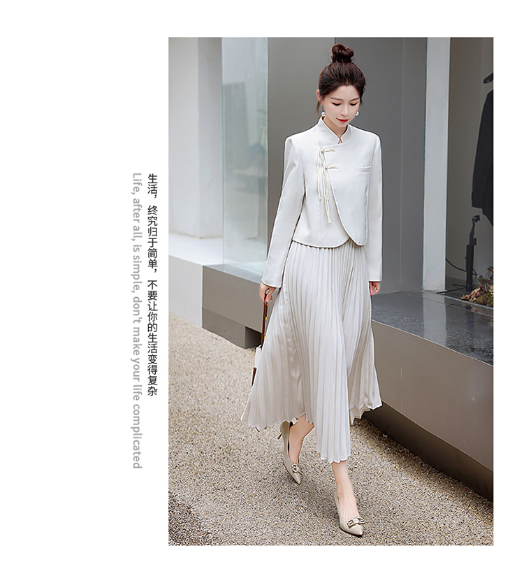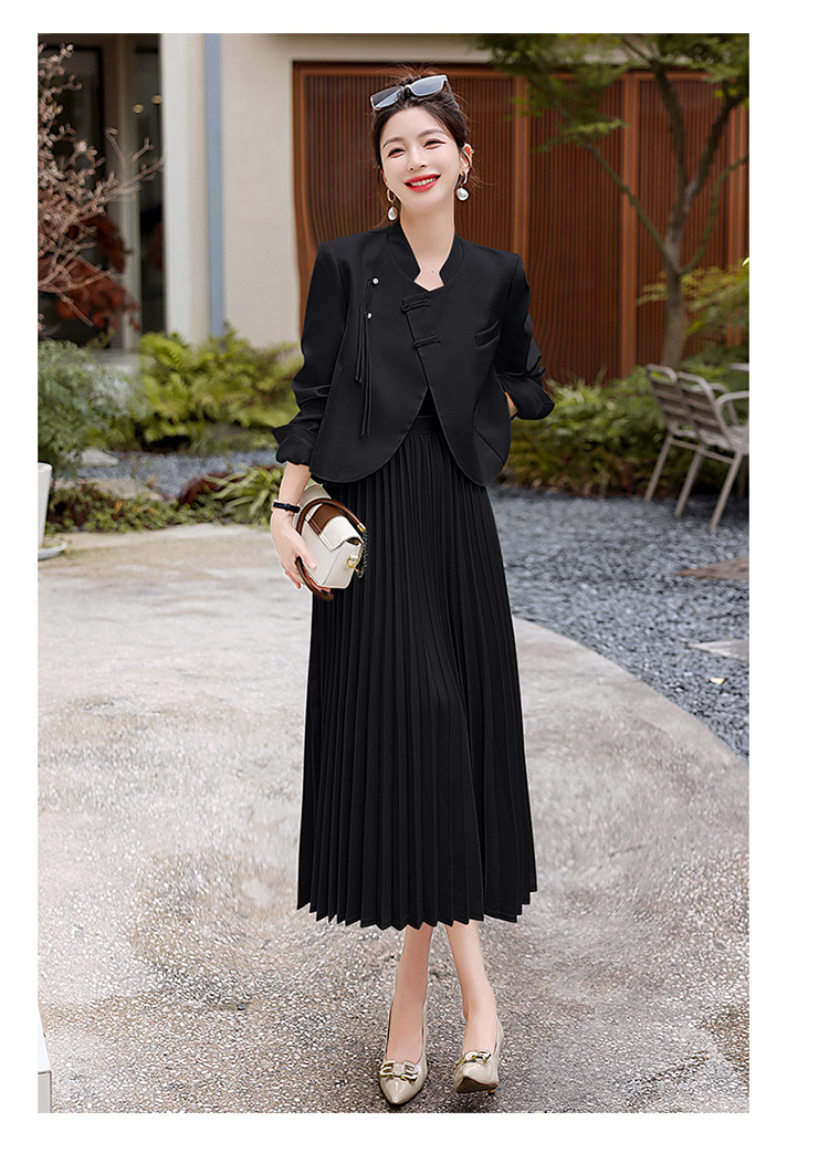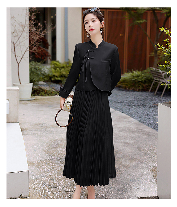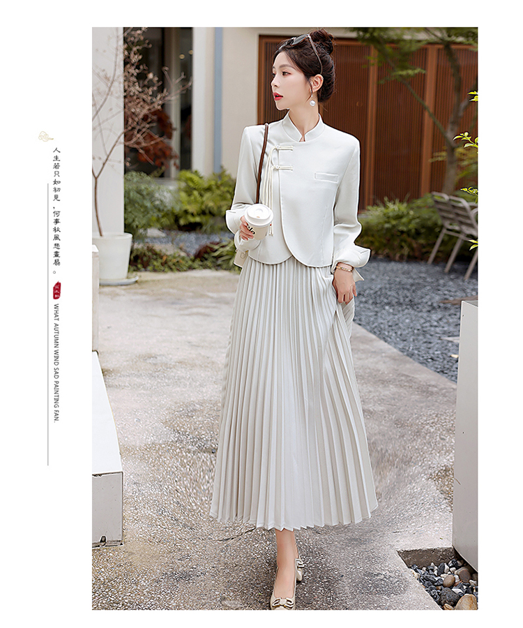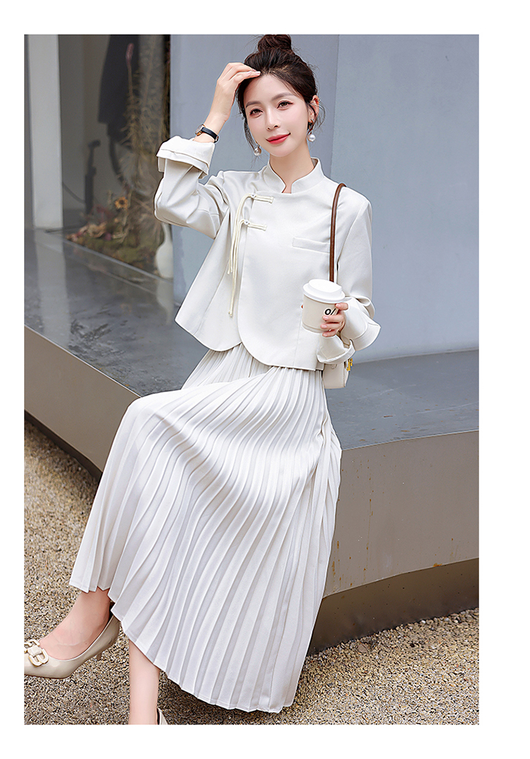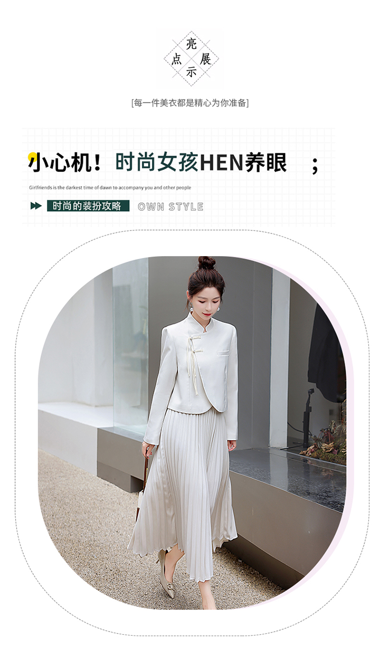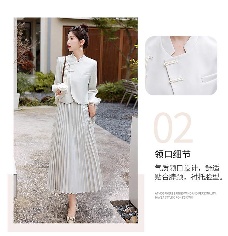 秋季新款,复古气质立领短款外套百褶裙半裙套装HR-MJA3255