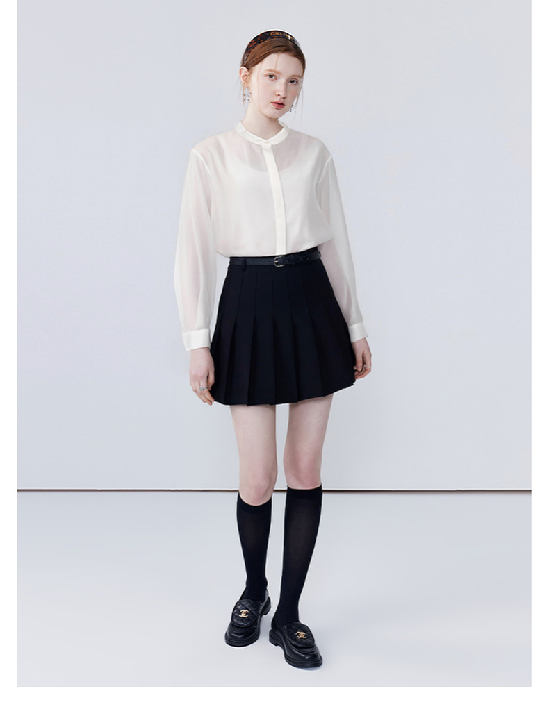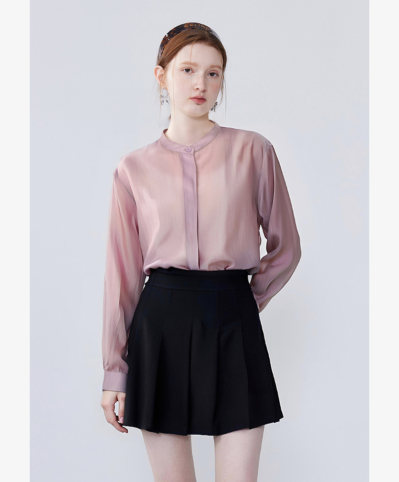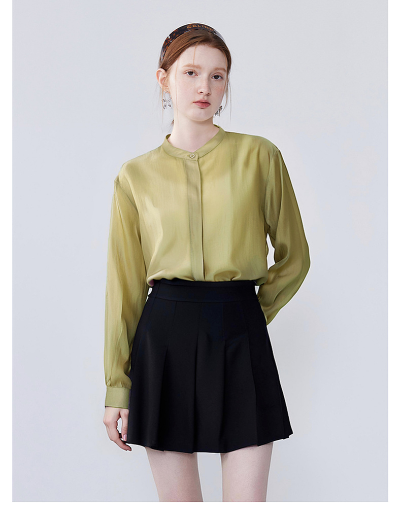 天猫同步【莱赛尔、轻薄凉感】拉夏贝尔/La Chapelle圆领长袖衬衫轻薄透气高级感长袖衬衣